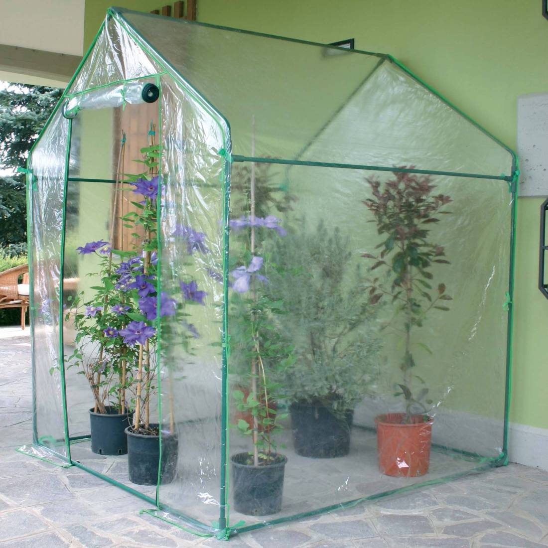 Serra Clematis - a casetta - 155 x 155 x 205 cm - acciaio verniciato/PVC - verde/trasparente - Verdemax