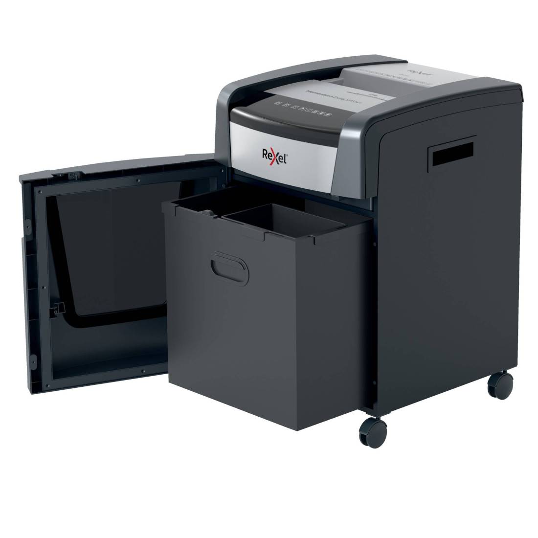 I distruggidocumenti Rexel Momentum Extra con tecnologia anti-inceppamento sono ideali per distruggere documenti riservati in ufficio. Il distruggidocumenti XP514+ distrugge fino a 14 fogli di carta A4 (80 gr/mq) in una sola volta attraverso la fessura di alimentazione manuale in micro frammenti (2x15mm). La tecnologia di rilevamento attivo misura il numero di fogli alimentati in tempo reale per evitare gli inceppamenti e gli errori di alimentazione della carta; il LED rosso sul pannello di controllo indica la presenza di troppi fogli. Questo distruggidocumenti non entra in funzione finché il numero di fogli non viene ridotto al di sotto o alla capacità massima di fogli. Questo distruggidocumenti con taglio a frammenti è progettato per un uso da moderato a intensivo grazie all’elevata capacità di fogli, al capiente cestino da 60L e al ciclo di lavoro continuo. Non c'è bisogno di alimentare manualmente la carta, o di rimuovere prima graffette e fermagli; questo distruggidocumenti Rexel distrugge anche CD, DVD e carte di credito in modo sicuro attraverso uno slot di alimentazione separato. Distrugge fino a 14 fogli A4 (80 gr/mq) in una volta sola P-5 taglio micro (2x15mm) La tecnologia di rilevamento attivo misura il numero di fogli alimentati in la presenza di troppi fogli. Questo distruggidocumenti non entra in funzione finché il numero di fogli non viene ridotto al di sotto o alla capacità massima di fogli. Questo distruggidocumenti distrugge anche carte di credito, punti metallici, graffette e CD/DVD. Cestino estraibile con capacità di 60L per un facile svuotamento. Ciclo di lavoro continuo con raffreddamento a ventola e modalità ECO per risparmiare energia quando non è in uso. Pannello di controllo touch 55 dBA di rumorosità, ultra-silenzioso Sensore infrarossi per indicazione di cestino pieno Funzione manuale di marcia avanti / indietro 2 anni di garanzia, 2 anni di garanzia sulle lame