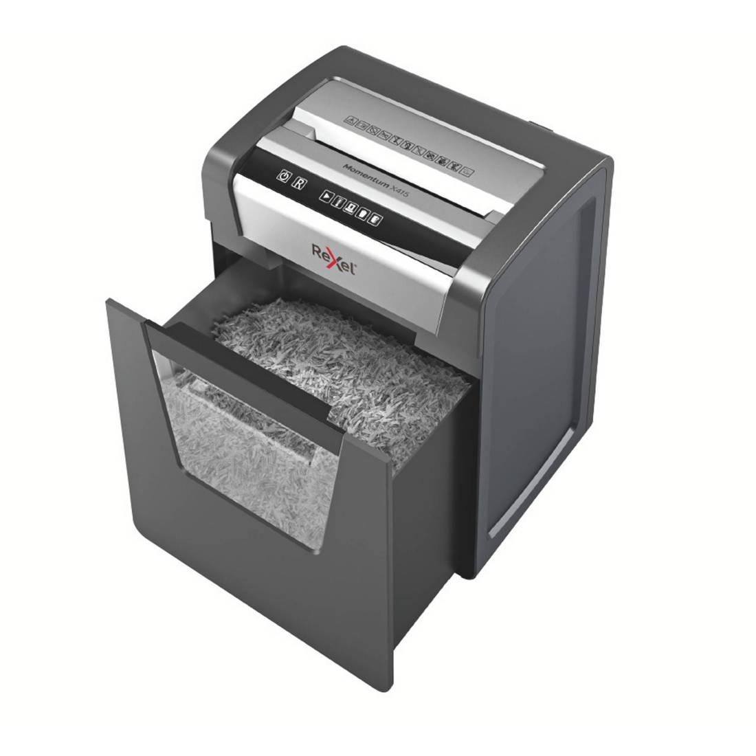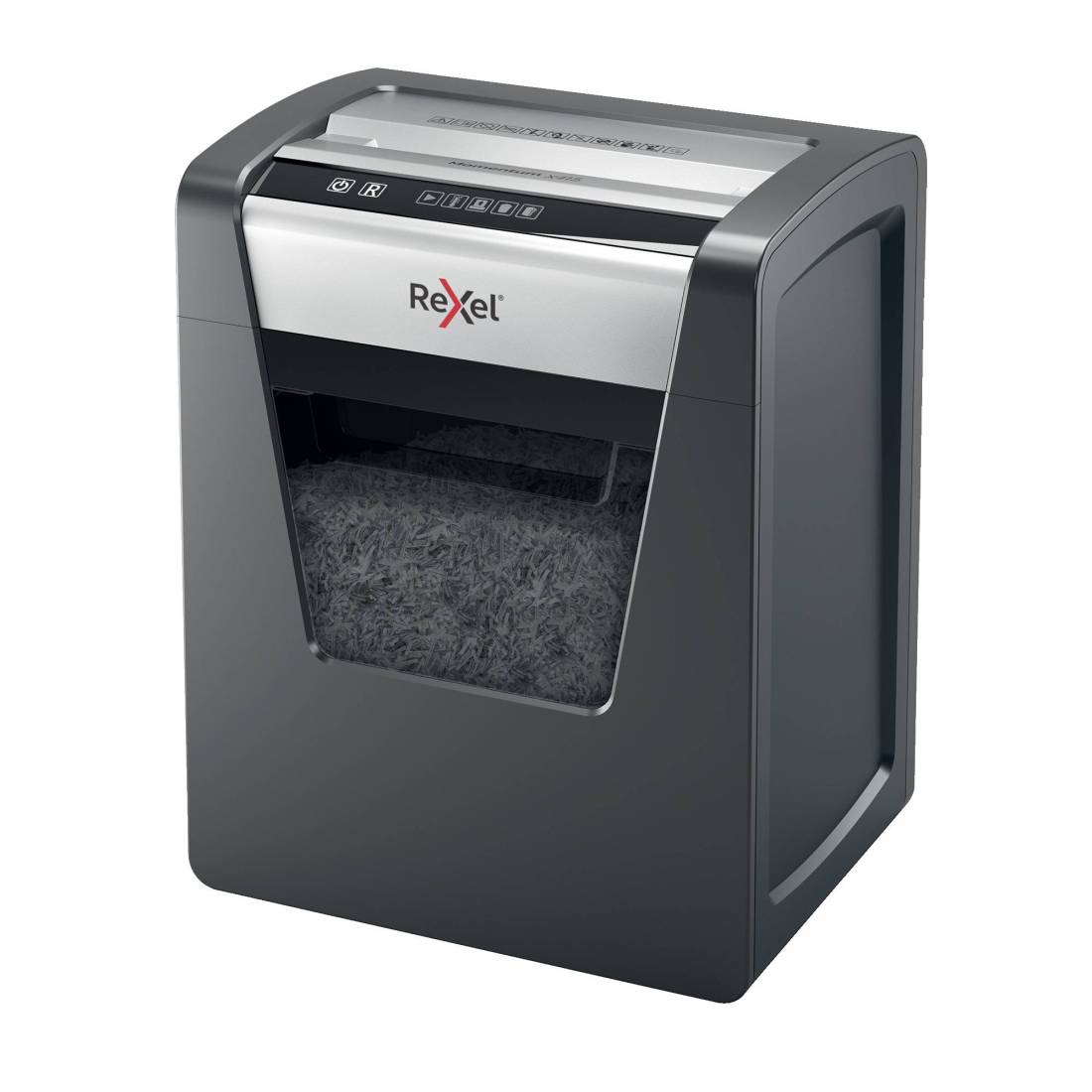 Il potere di distruggere di più! Rexel momentum X415 distrugge fino a 15 fogli per volta con un ciclo di lavoro continuo di 120 minuti. Livello di sicurezza P4 con taglio a frammenti da 4x40 mm. Silenzioso, con pulsanti di controllo a sfioramento semplici e intuitivi per un facile utilizzo e una generosa capacità del cestino da 23 litri. Tipo di taglio: frammento Dimensioni di frammento: 4x40mm Livello sicurezza: DIN P4 Imboccatura: 223mm Capacità di taglio: 15 fogli Capacità cestino: 23lt Livello rumorosità: 62dB Ciclo di lavoro: 120min Ciclo di riposo: 120/60min Funzione Release: si Distruzione graffette e punti: si Distruzione Credit Cards/CD: no Pulizia automatica lame: no Autolubrificazione lame: no Voltage: 220v/240v 50hz/60hz Consumo energetico: 280 W Consumo energetico in modalità Standby: 1.5w Power Cord / Plug: Fixed Garanzia: 2 anni Dimensioni: 370x465x279mm Peso: 12,5 Kg