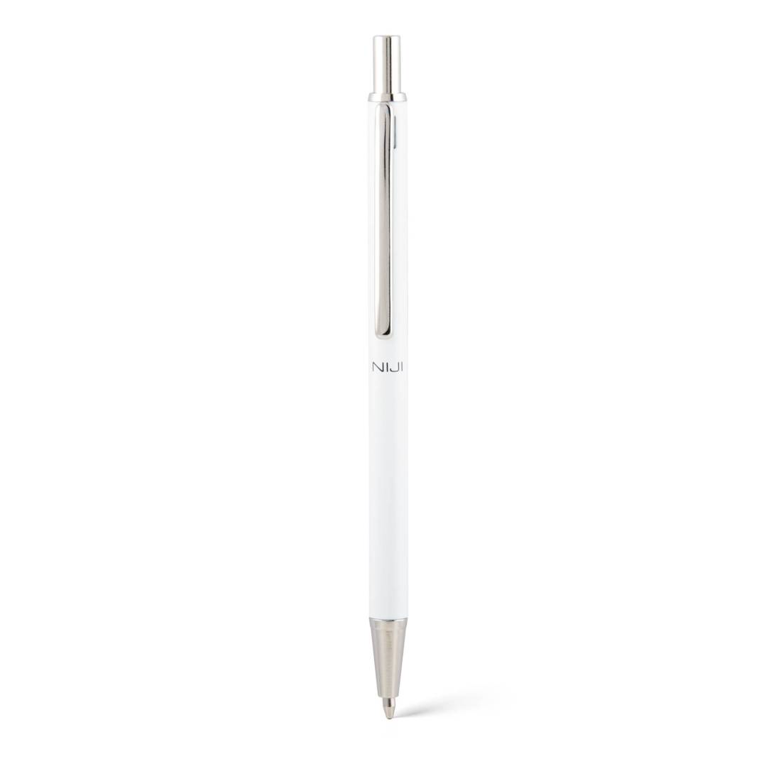 Mini penna a sfera con meccanismo a scatto. In metallo in colori assortiti, Lunghezza 10cm. Ricaricabile con refill 1241. Ideale per agenda.