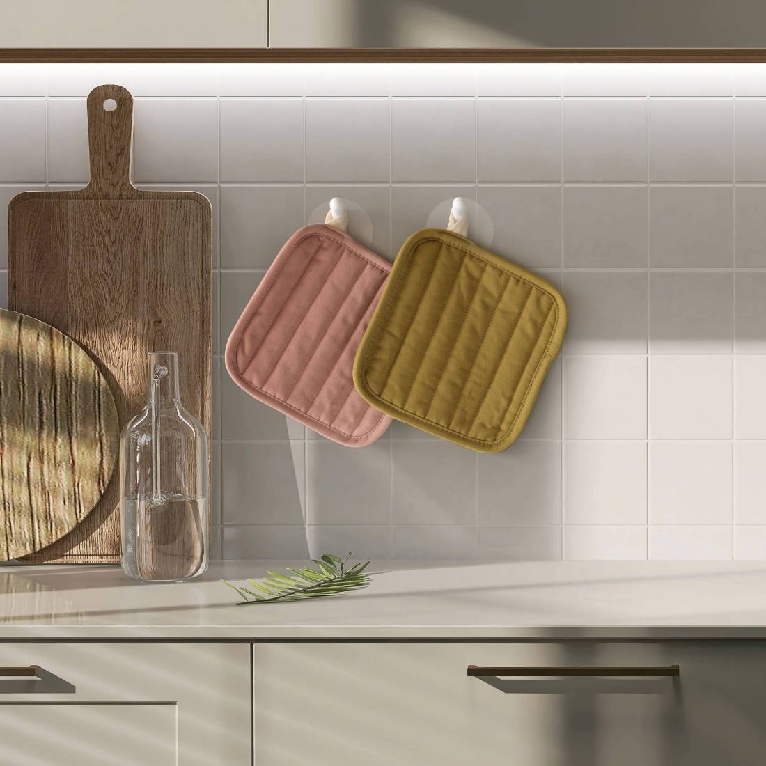 Confezione da 2 ganci adesivi, modello J. Installazione senza perforazione. Portata massima 3 kg.