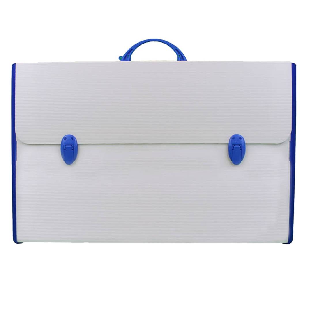 Valigetta in polipropilene alveolare con fianchi di rinforzo in polipropilene rigido. Chiusura doppia. Maniglia e chiusura in plastica antiurto in colori assortiti.