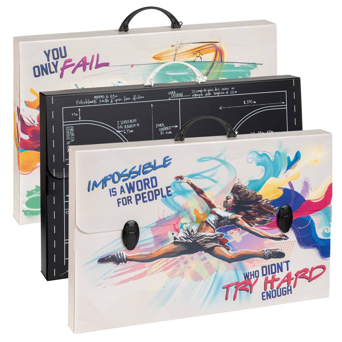 Valigette in polipropilene alveolare con stampa in alta risoluzione. 3 Fantasie assortite.