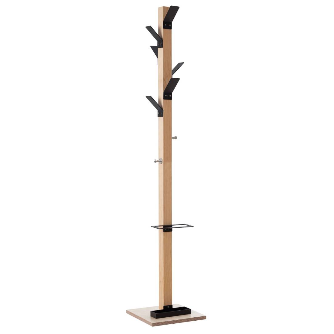 PAPERFLOWAppendiabiti in legno massello verniciato, sezione 60x60mm con 6 pomelli in polistirene resistenza agli urti e 2 pomelli in acciaio per borse, zaini ecc. Base in compensato marino verniciato 35x35cm spess. 20mm, su cui si trova la vaschetta di recupero gocce per il portaombrelli.