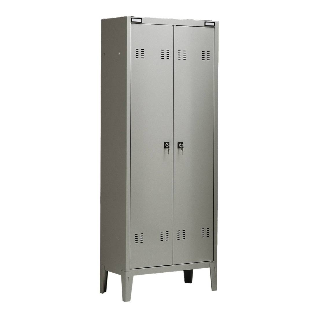 Armadio spogliatoio a 2 posti L70 x P35 x H180cm; in metallo verniciato grigio, provvisto di serratura e chiavi. Fornito montato.