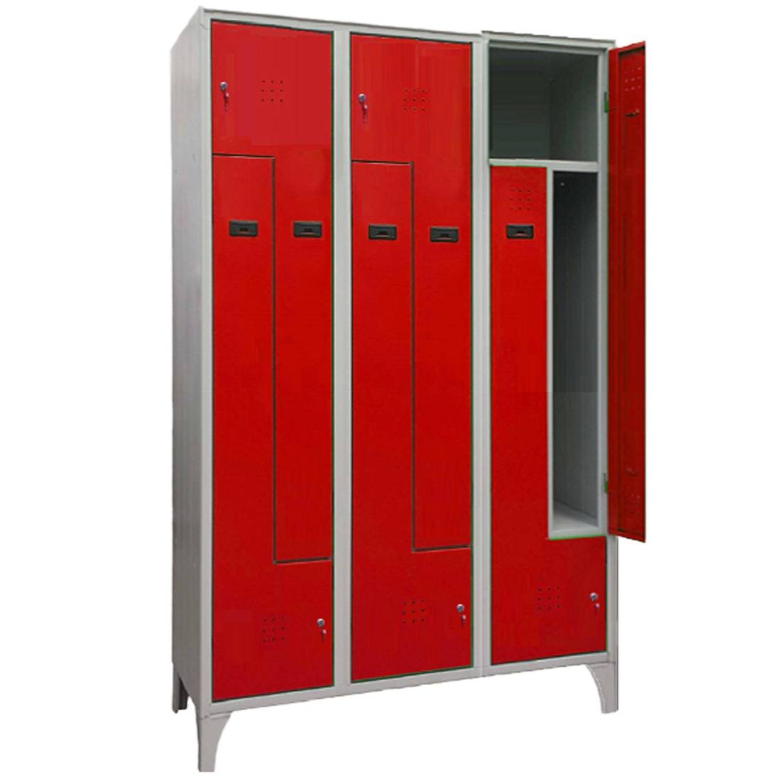 Armadio spogliatoio in metallo salvaspazio - a 6 ante a L - 120 x 50 x 195 cm - grigio/rosso - Fasma