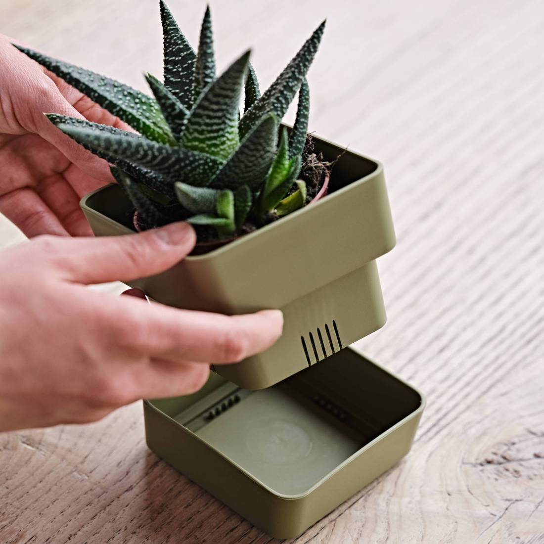 Vaso realizzato in polipropilene adatto ad ambienti interni e esterni. Dotato di sottovaso ad incastro. Dimensioni: 12x h.11cm. Pulire con una spugna bagnata con acqua e detergente liquido neutro.