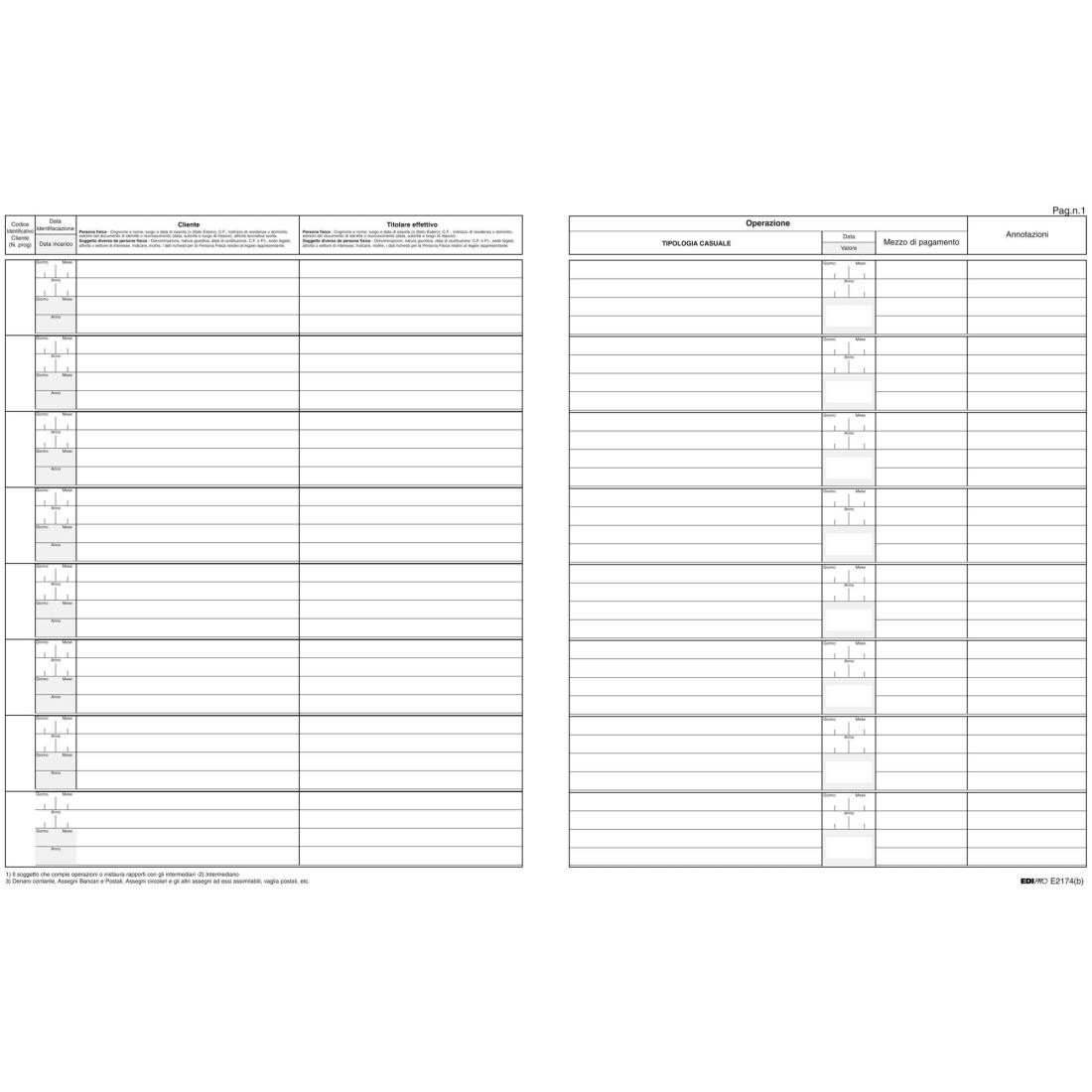 Registro antiriciclaggio per professionisti - 31 x 24cm - 46 fogli - Edipro