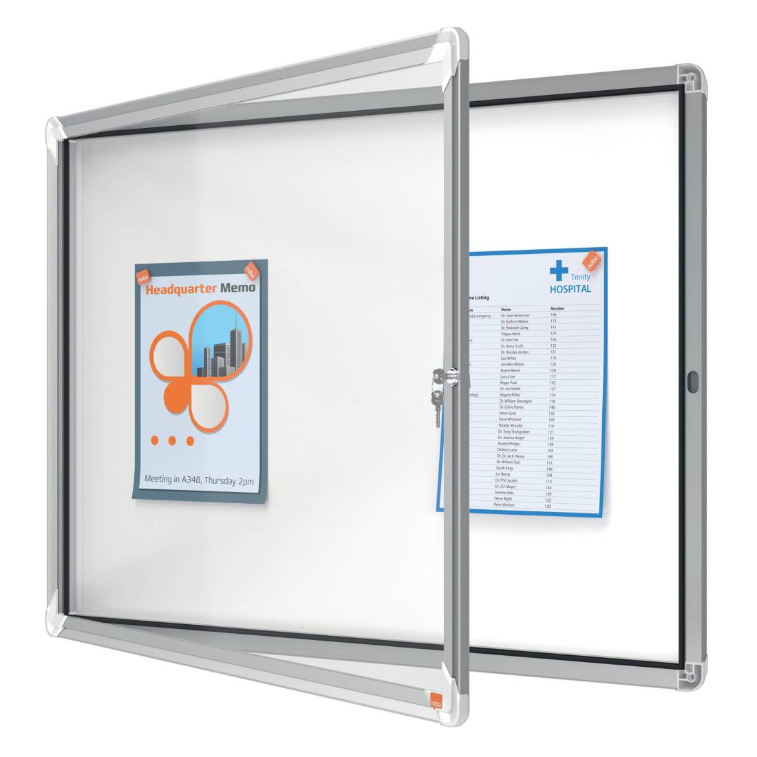 NOBOAD ANTA BATTENTE. NUOVO DESIGN CON ROBUSTA CORNICE IN ALLUMINIO E VETRO DI SICUREZZA DI 4MM. FONDO IN ACCIAIO BIANCO MAGNETICO PER USO CON MAGNETINI O SCRIVIBILE CON PENNARELLI A SECCO. FISSAGGIO SEMPLICE EFFETTUABILE DA UNA SOLA PERSONA. SERRATURA CON 2 CHIAVI. APERTURA ISTALLABILE SIA A DESTRA CHE A SINISTRA. F.TO 8XA4. Dimensione esterna:HL69,2 x L97,2 x P3,7cm