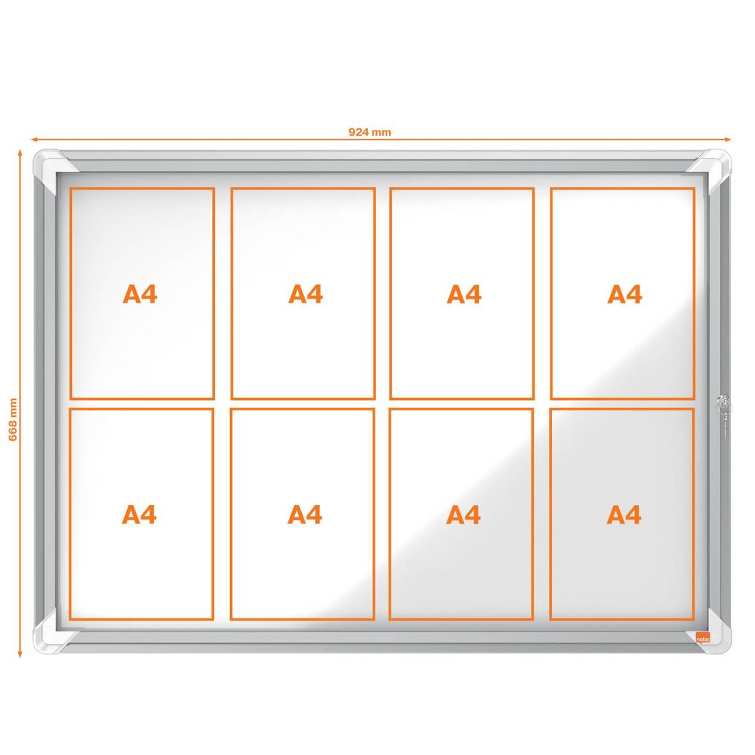 Bacheca per interni - fondo magnetico bianco - 8 fogli A4 - orizzontale - Nobo