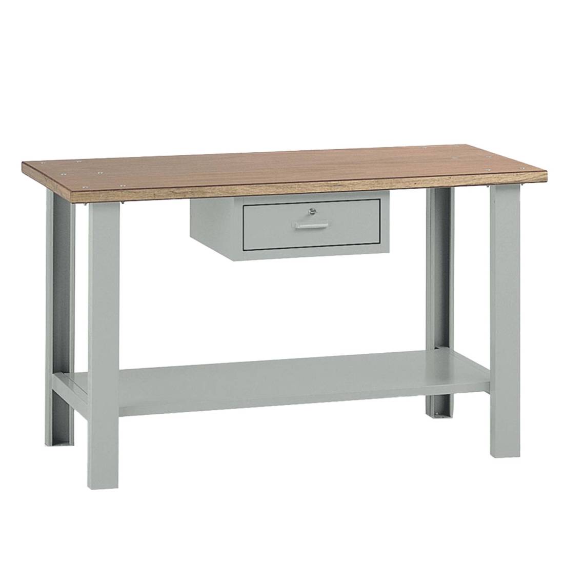 Banco da lavoro - con cassetto - 150 x 75 x 90 cm - grigio/legno - Tecnotelai