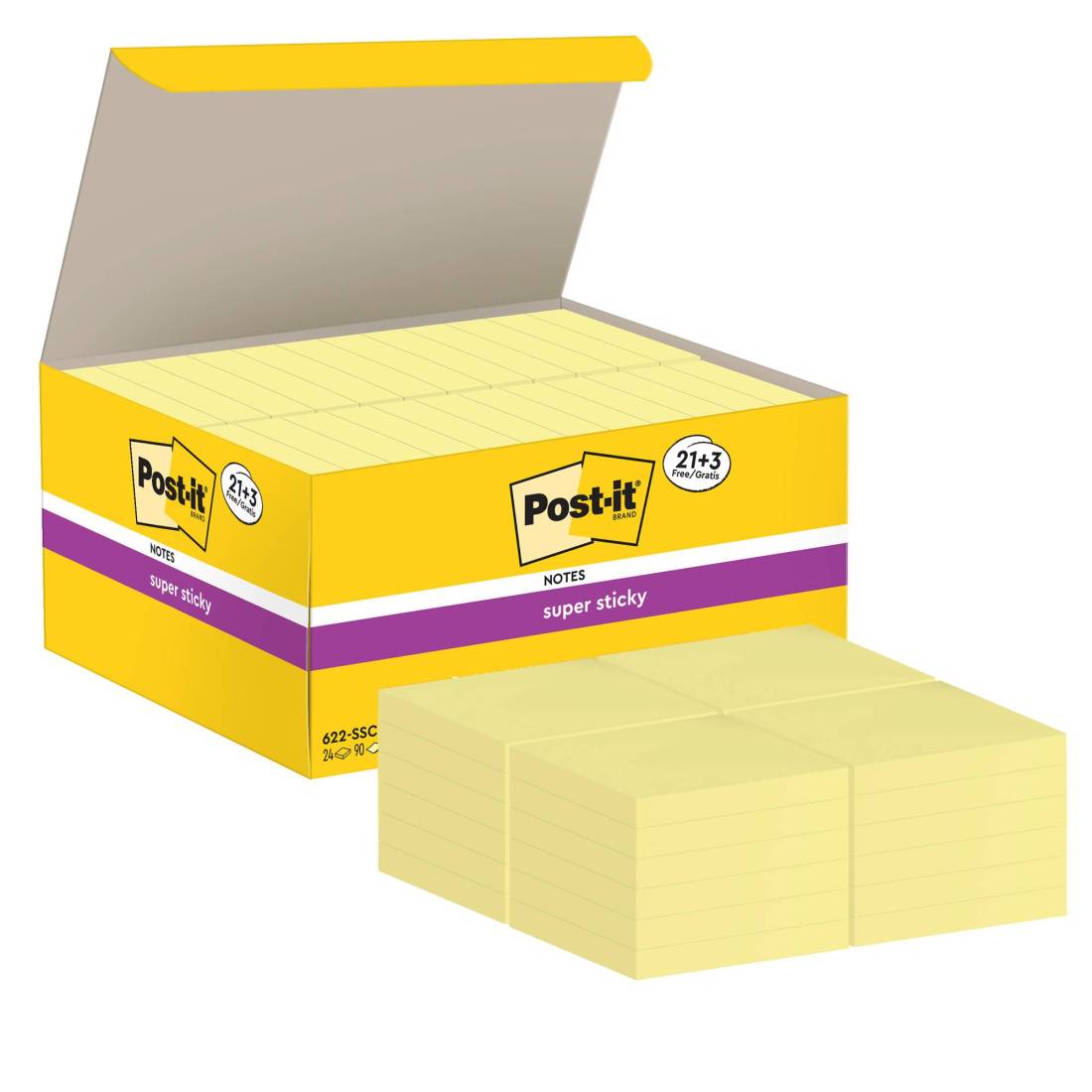 Blocco foglietti Post-it Super Sticky - 622-SSCY-VP24-EU - 47,6 x 47,6 mm - giallo Canary - 90 fogli - Post-it - conf. 24 blocch