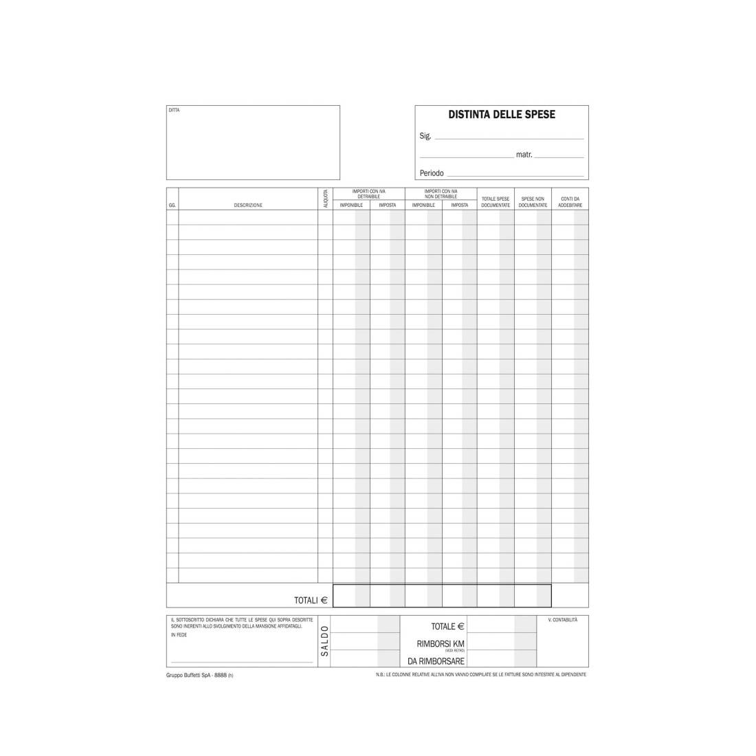 Blocco 25 buste staccabili NOTA SPESE, f.to 23x16cm.
