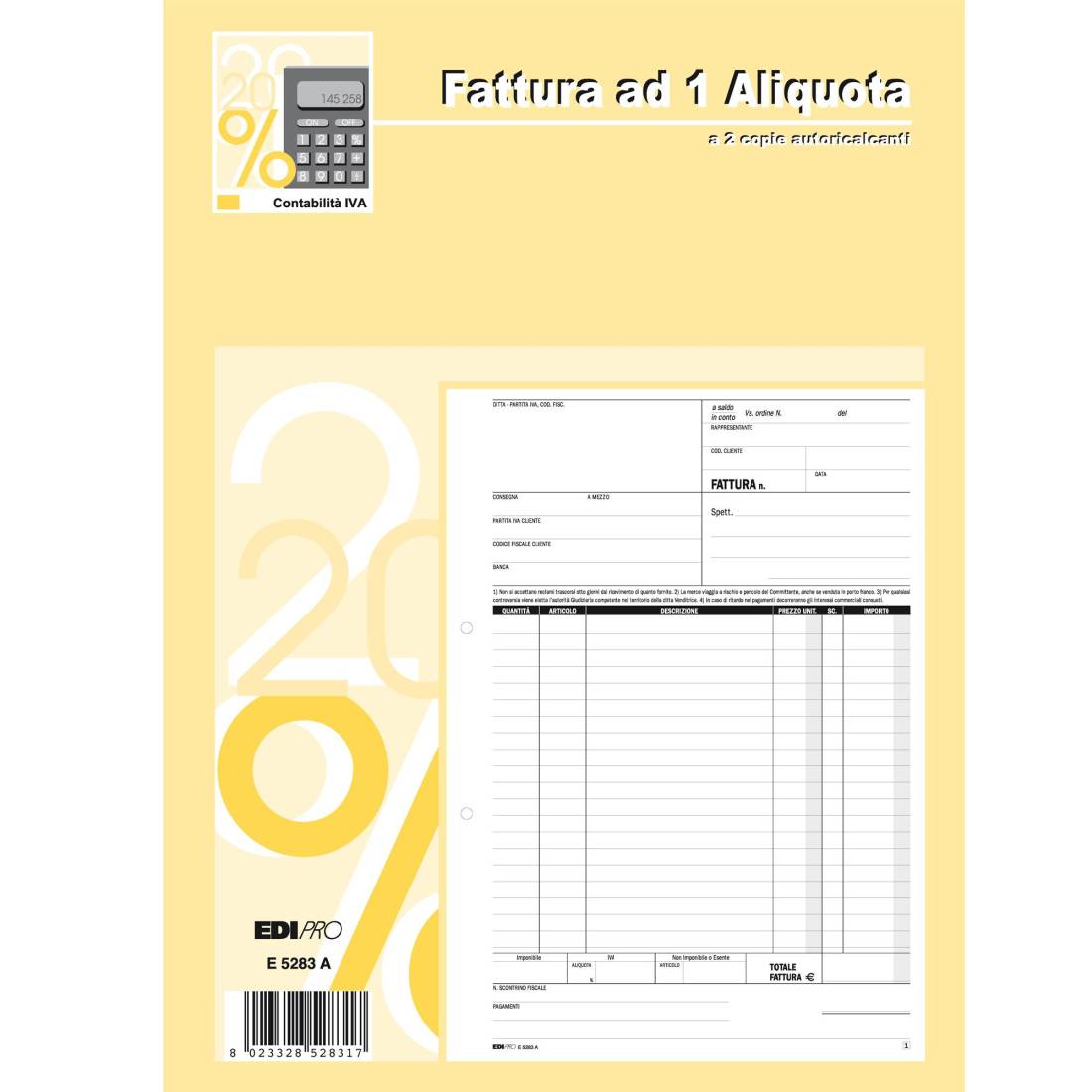 Blocco fatture 1 aliquota Iva - 50/50 fogli autoricalcanti - 29,7 x 21cm - Edipro