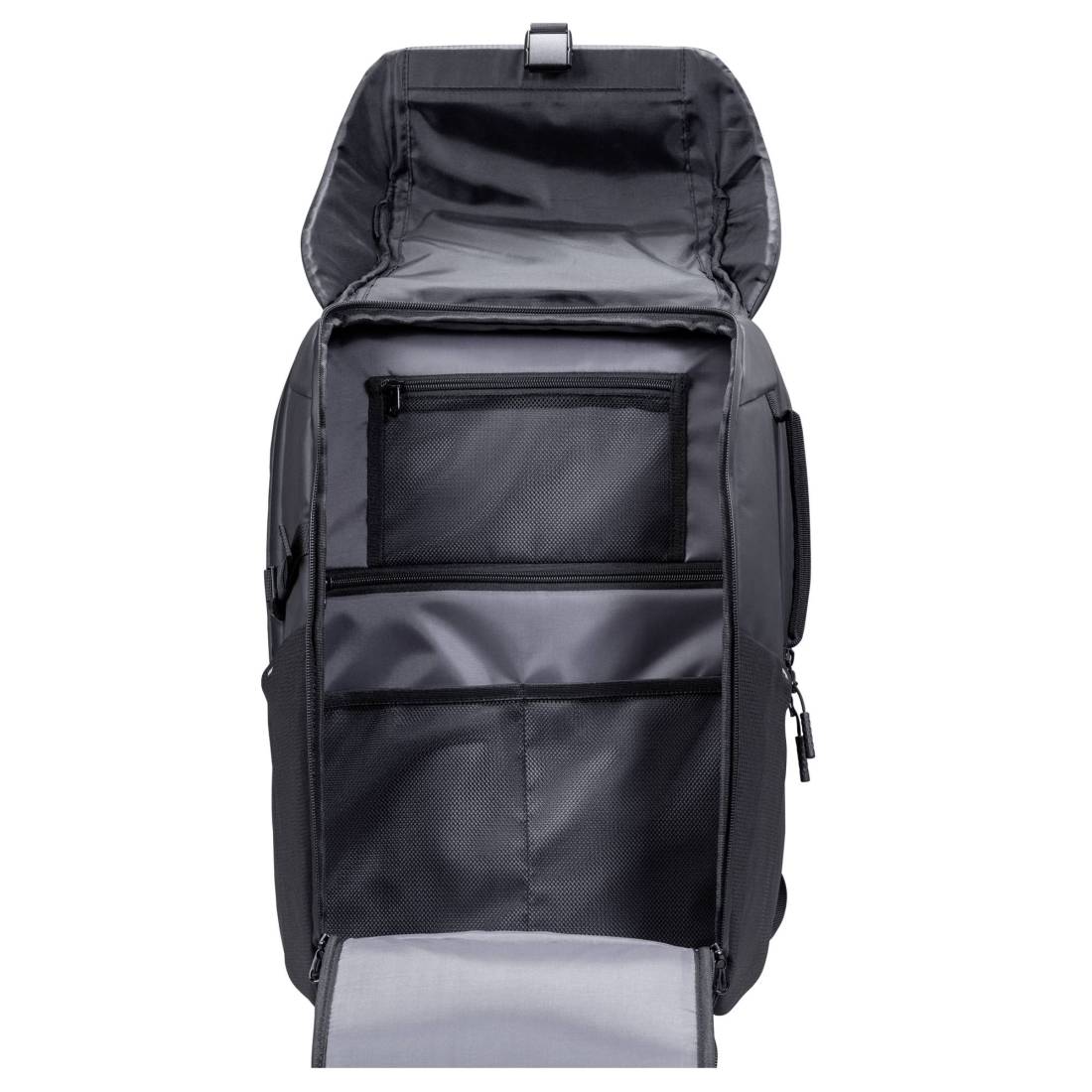Zaino professionale per notebook fino a 17", ideale per l’uso quotidiano in ufficio e in mobilità. Dotato di ampio scomparto imbottito, tracolla regolabile e struttura resistente ma leggera (1 kg). Include fascia posteriore per aggancio a trolley, perfetta per viaggi e trasferte. Il design sobrio ed elegante in colore nero è completato da una protezione IPX4 contro spruzzi d’acqua, per una maggiore sicurezza in ogni condizione..