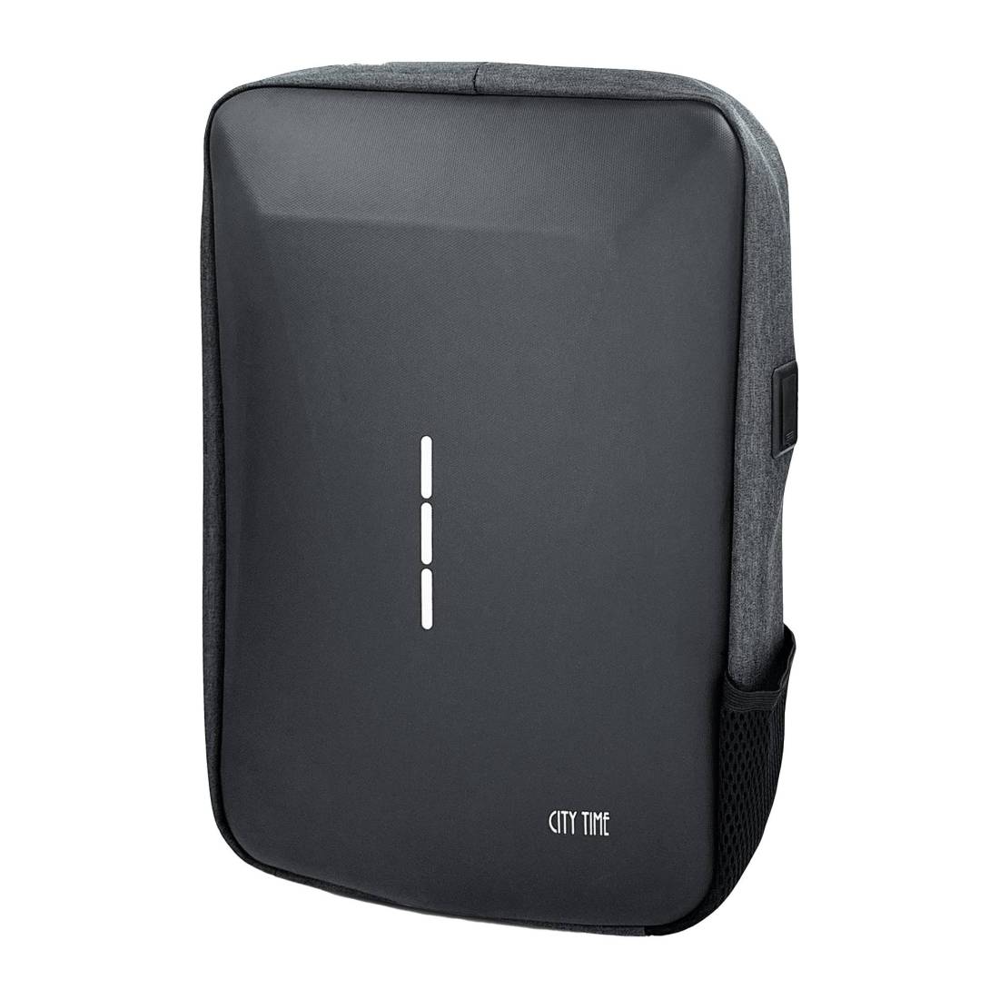 City TimeZaino unico scomparto in tessuto con fronte rigido in ABS antiurto. Scomparto interno espandibile con tasca imbottita per notebook 15.6". Retro e spallacci imbottiti traspiranti, regolabili. Fascia posteriore per trolley. Presa Usb e Usb-c per powerbank. Tasca laterale. Dimensioni: 29x41x10cm