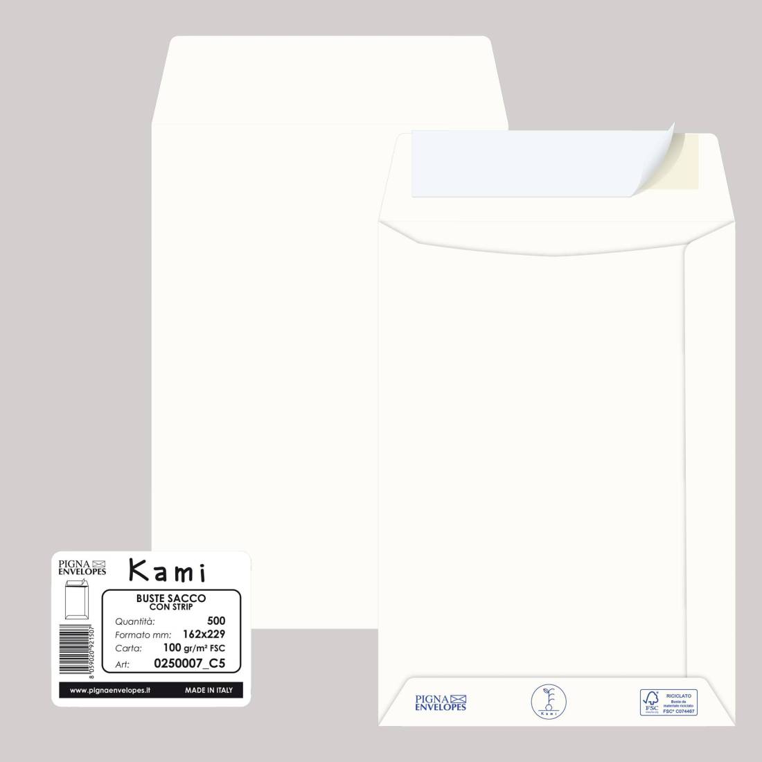 Busta a sacco Kami Strip - 16,2 x 22,9 cm - 100 gr - carta riciclata FSC - bianco - Pigna Envelopes - conf. 500 pezzi