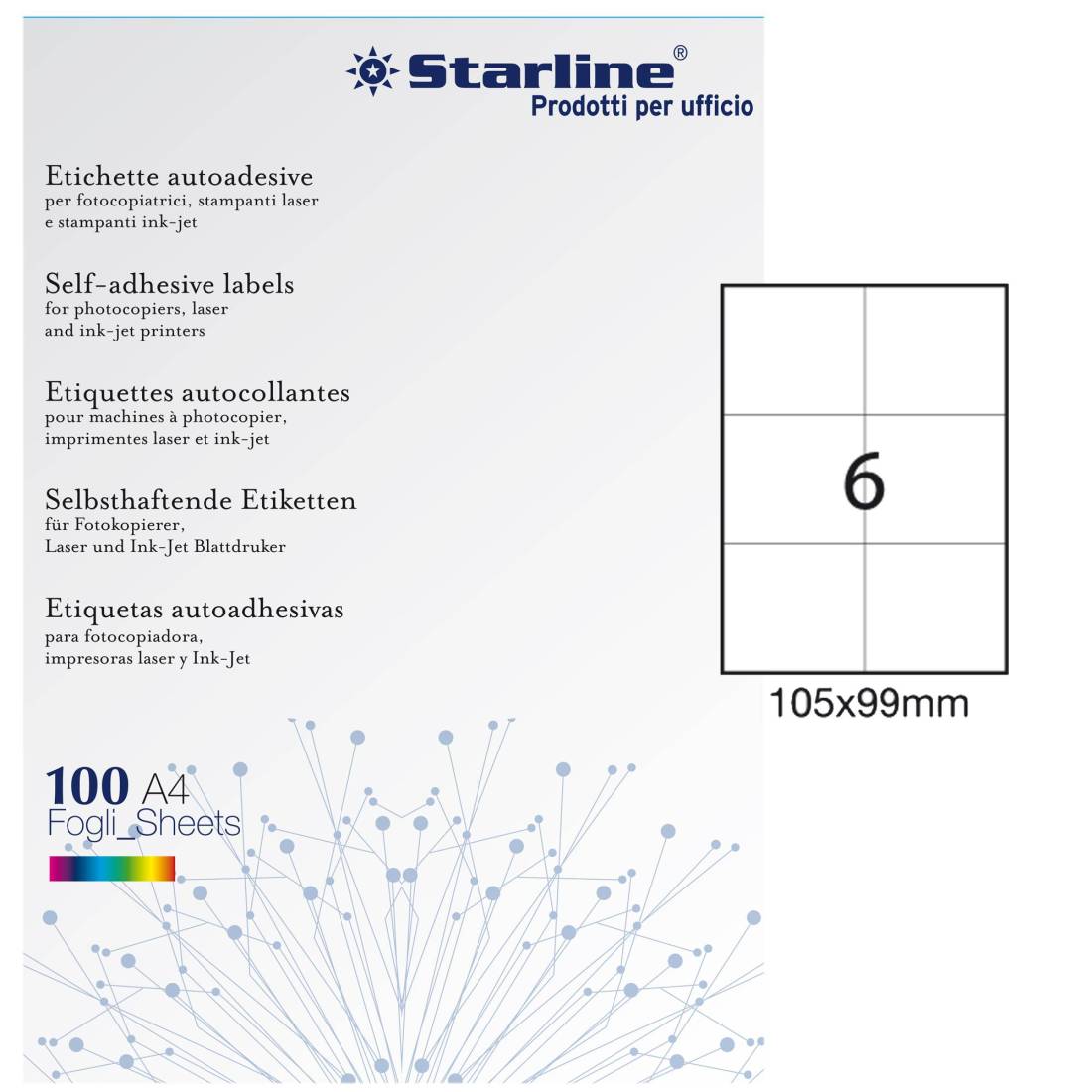 Etichette adesive - in carta - permanenti - 105 x 99 mm - 6 et/fg - 100 fogli - bianco - Starline