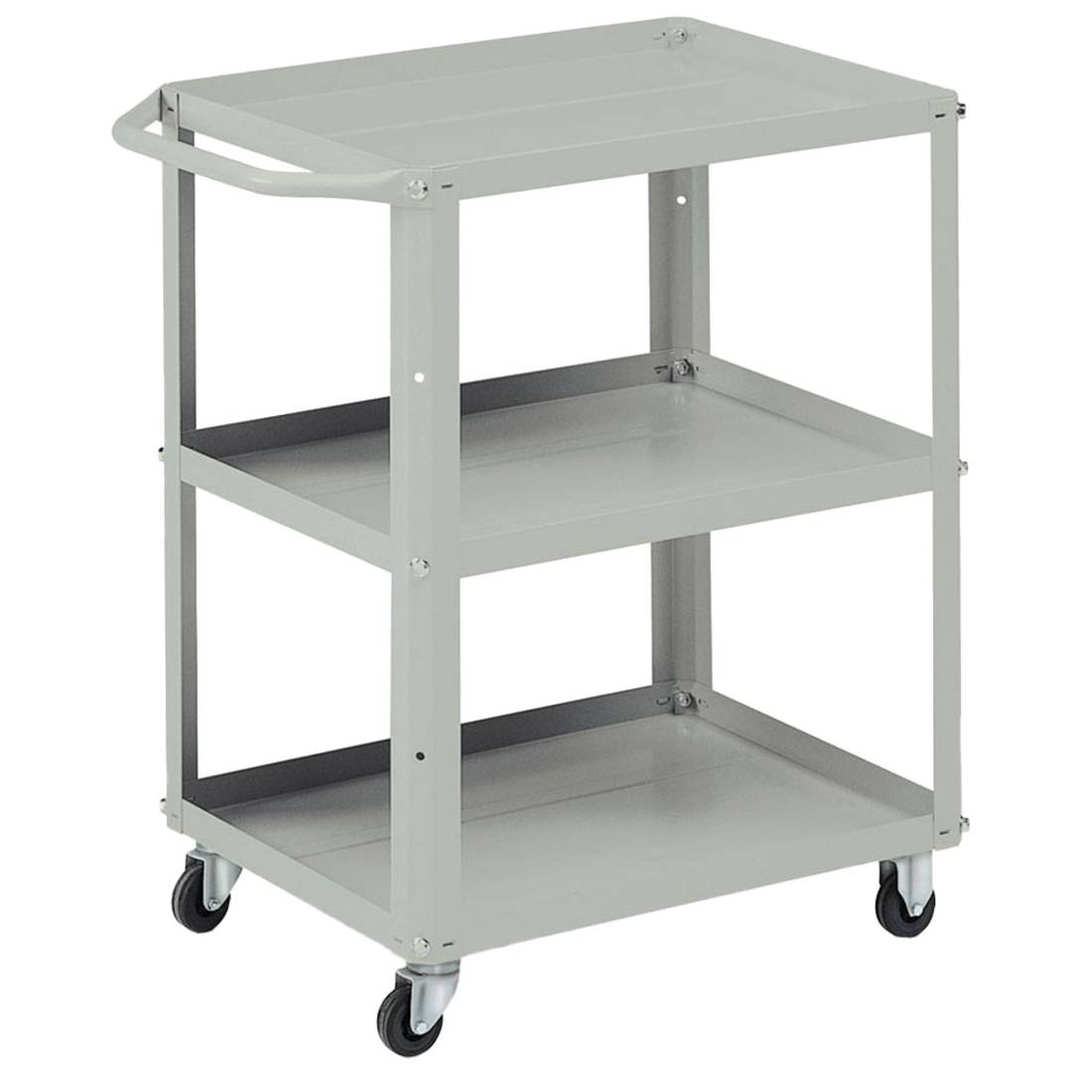 Pratico carrello a 3 vasche smontabile in lamiera sagomata idoneo all’utilizzo in ambienti ridotti. Verniciatura a polvere grigio RAL 7038.