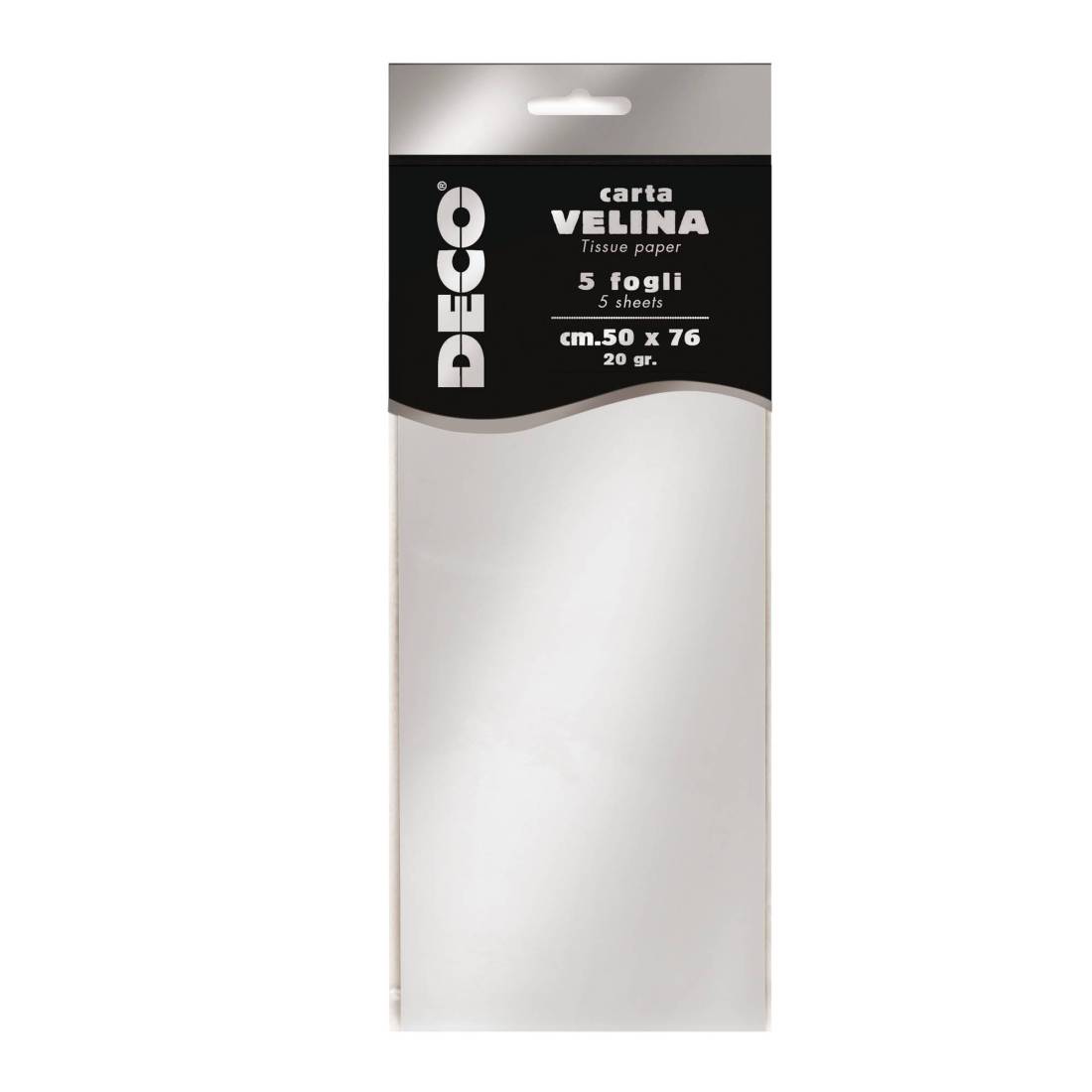Carta velina metallizzata - 20 gr - 50x76 cm - argento - DECO - busta 5 fogli