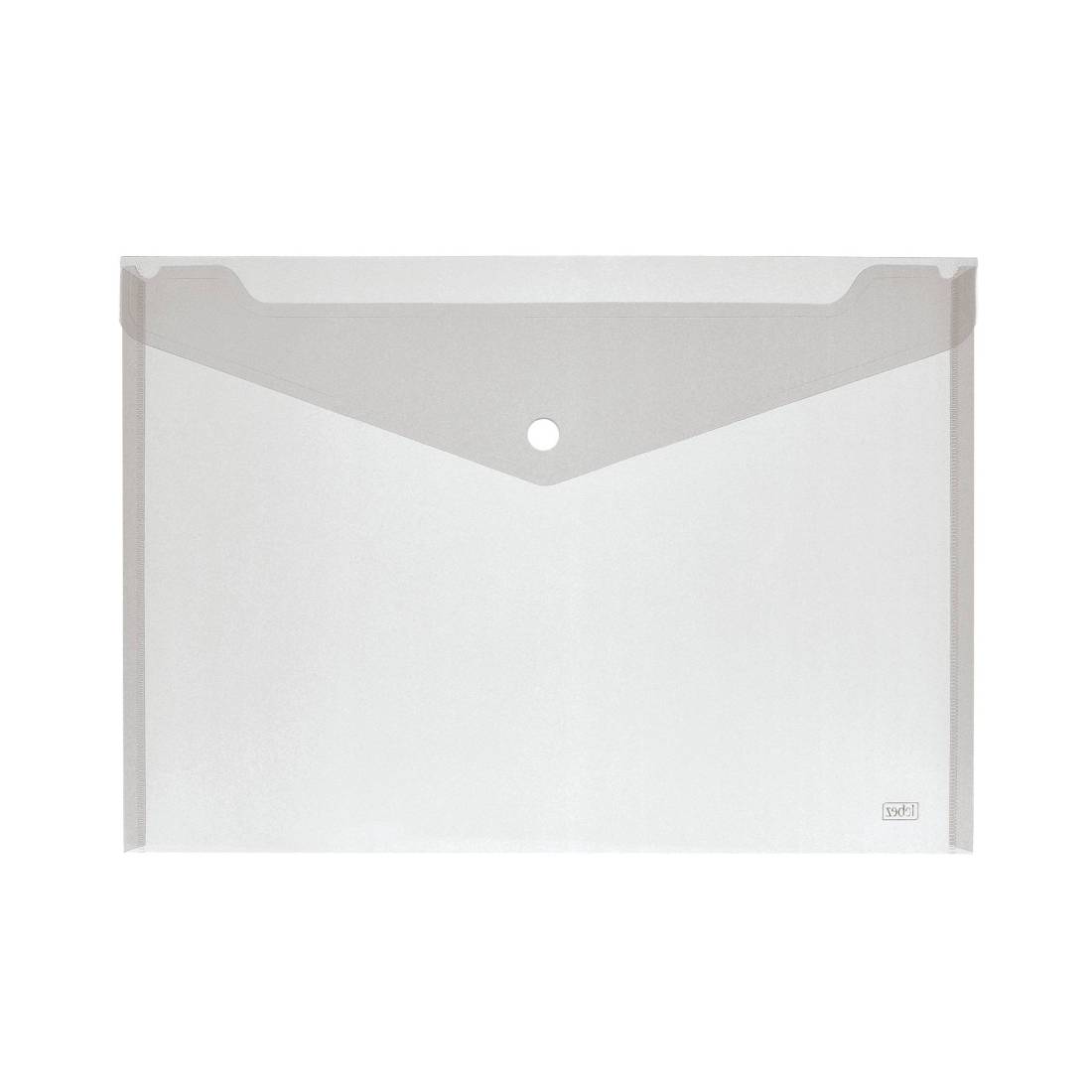 Buste in polipropilene con chiusura con bottone. Confezione assortita in 4 colori. Formato utile: 15,5x11,5cm.