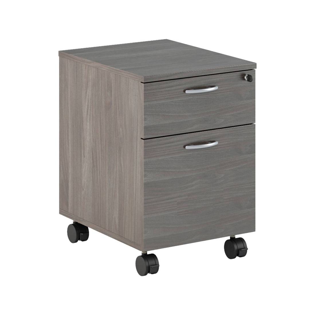 Cassettiera 1 cassetto con serratura + 1 classificatore per cartelle sospese con interasse 33 cm. Dotata di ruote pivotanti e meccanismo anti-ribaltamento. Fornita smontata. Dimensioni: L41,8 x P52 x H59,5cm