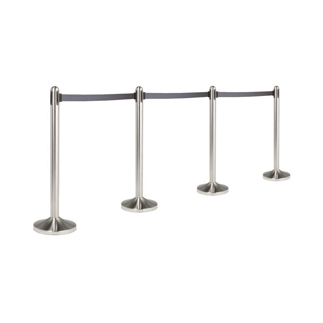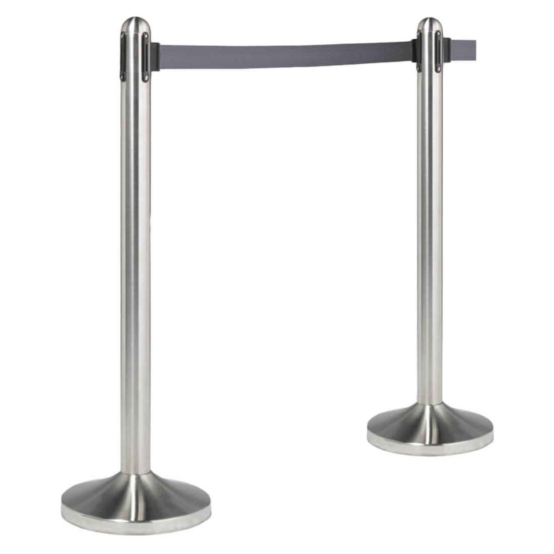 Colonnina in acciaio inox satinato H100cm con nastro in nylon da 210cm. Ogni colonnina ha 4 diversi punti per l'aggancio del nastro retrattile. Adatta sia per uso interno che esterno. Ogni colonnina comprende un attacco extra per fissare il nastro alla parete. Peso: 12Kg.