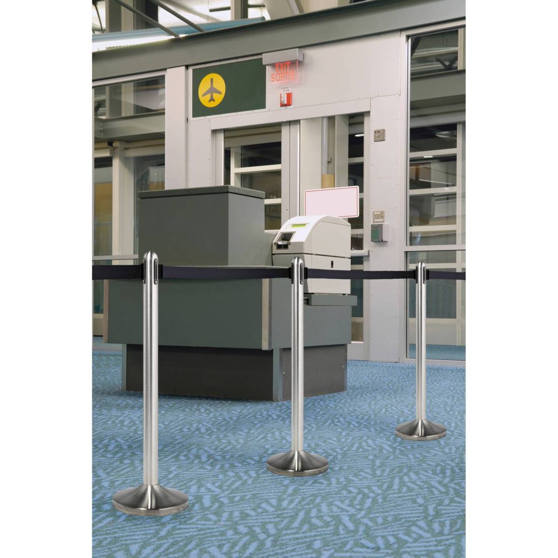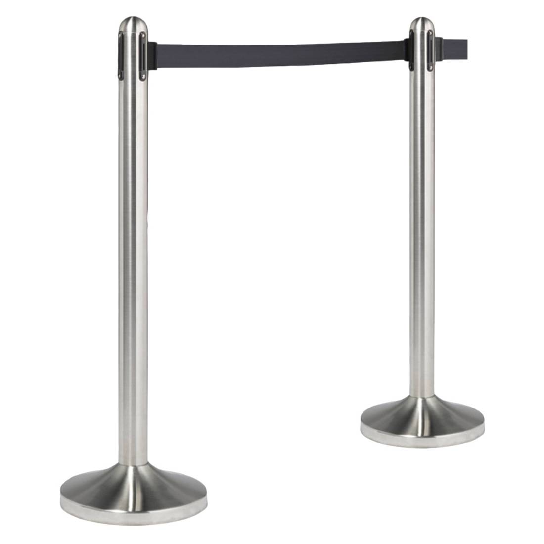 Colonnina in acciaio inox satinato H100cm con nastro in nylon da 210cm. Ogni colonnina ha 4 diversi punti per l'aggancio del nastro retrattile. Adatta sia per uso interno che esterno. Ogni colonnina comprende un attacco extra per fissare il nastro alla parete. Peso: 12Kg.