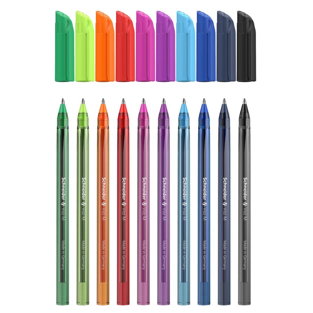 Penna a sfera con inchiostro Gelco, tecnologia brevettata da Schneider, che consente la scorrevolezza di una penna gel ma senza macchiare e senza rinunciare alla durevolezza. Fusto trasparente. Cappuccio dello stesso colore del fusto, munito di piccolo clip. Punta M in acciaio. Realizzata per il 94% in plastica riciclata.