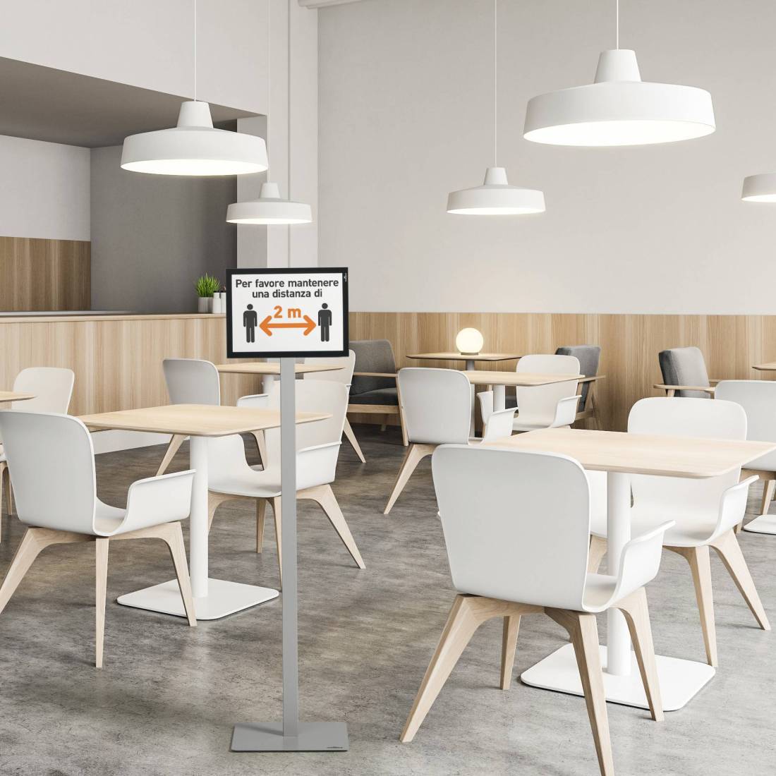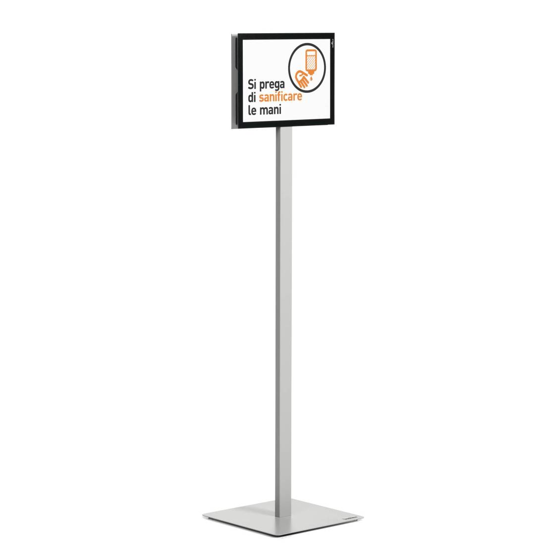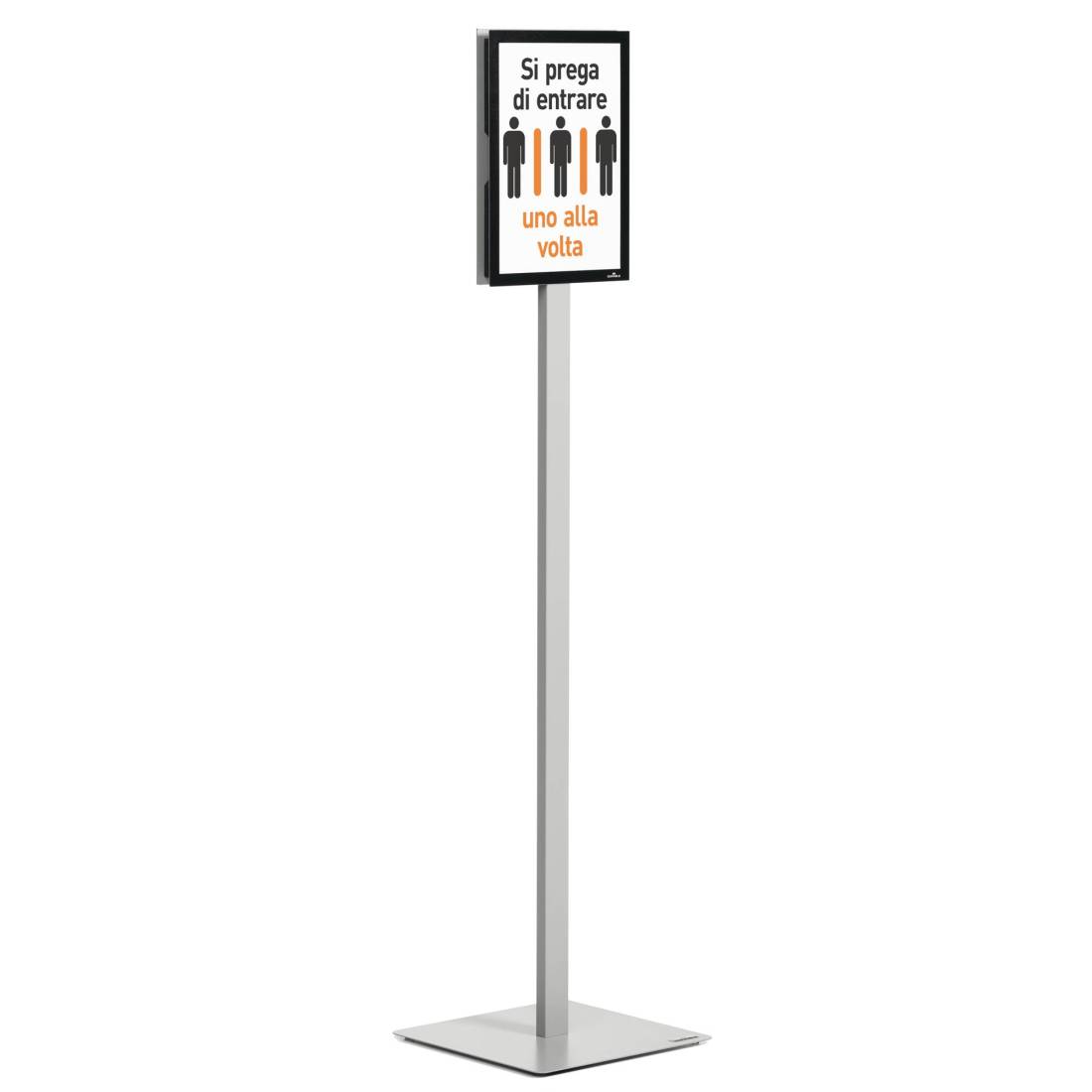 L'espositore da pavimento INFO STAND BASIC è adatto sia alla presentazione di informazioni che come sistema di orientamento e guida grazie alla sua leggibilità su due lati. Facile sostituzione degli inserti grazie alle due cornici espositive magnetiche DURAFRAME® MAGNETIC incluse nella confezione, che aderiscono al pannello in metallo. Elevata stabilità garantita dallo stelo di alta qualità e dalla pesante base dotata di 4 piedini antiscivolo. L‘innovativo meccanismo ad incastro permette di posizionare il pannello espositivo in orizzontale o in verticale grazie alle scanalature presenti sul lato corto e sul lato lungo, senza l‘uso di minuteria. L'espositore è adatto a reception, fiere, atri e sale d'attesa. Le cornici espositive DURAFRAME® MAGNETIC di ricambio sono acquistabili separatamente in diversi colori. Template gratuiti scaricabili dal sito www.duraprint.it Kit e istruzioni di montaggio inclusi nella confezione.