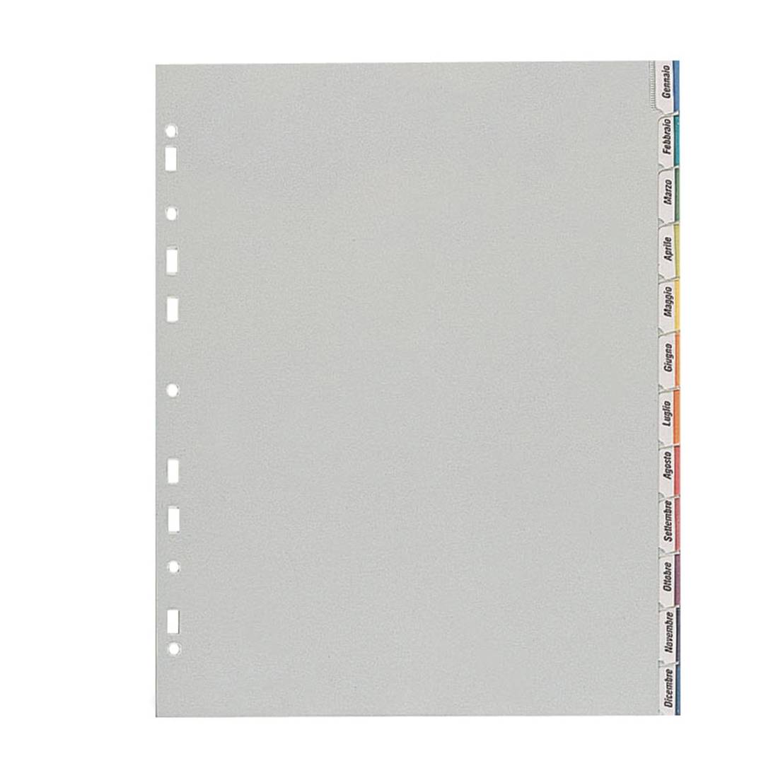 Divisori realizzati in Polipropilene di colore grigio da 120micron. Dotati di 12 tacche neutre e di un cartoncino stampato e fustellato per la personalizzazione delle tacche.