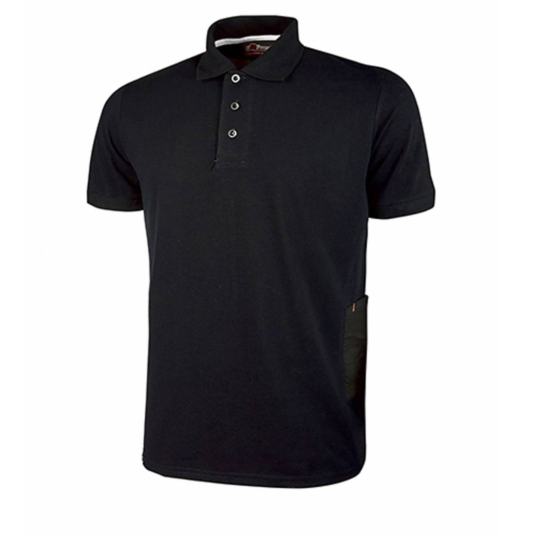 U-PowerPolo, manica corta, in piquet di polycotone. Slim fit. Collo e bordo manica a costine elasticizzate. Collo chiuso da tre bottoni in tono. Fettuccia para- sudore bianca. Tasca porta cellulare sul fianco sinistro con travetta rossa. Nastro rosso/reflex su colletto nella parte posteriore sulla manica destra. Per Agricoltori, Autotrasportatori, Carpentieri, Elettricisti, Idraulici, Imbianchini, Installatori, Magazzinieri, Meccanici, Muratori, Pescatori. Confromità alle norme CEE, EN ISO 13688:2013