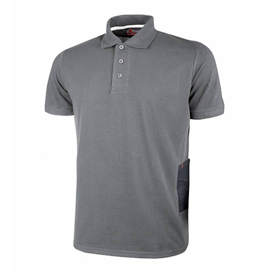 U-PowerPolo, manica corta, in piquet di polycotone. Slim fit. Collo e bordo manica a costine elasticizzate. Collo chiuso da tre bottoni in tono. Fettuccia para- sudore bianca. Tasca porta cellulare sul fianco sinistro con travetta rossa. Nastro rosso/reflex su colletto nella parte posteriore sulla manica destra. Per Agricoltori, Autotrasportatori, Carpentieri, Elettricisti, Idraulici, Imbianchini, Installatori, Magazzinieri, Meccanici, Muratori, Pescatori. Confromità alle norme CEE, EN ISO 13688:2013