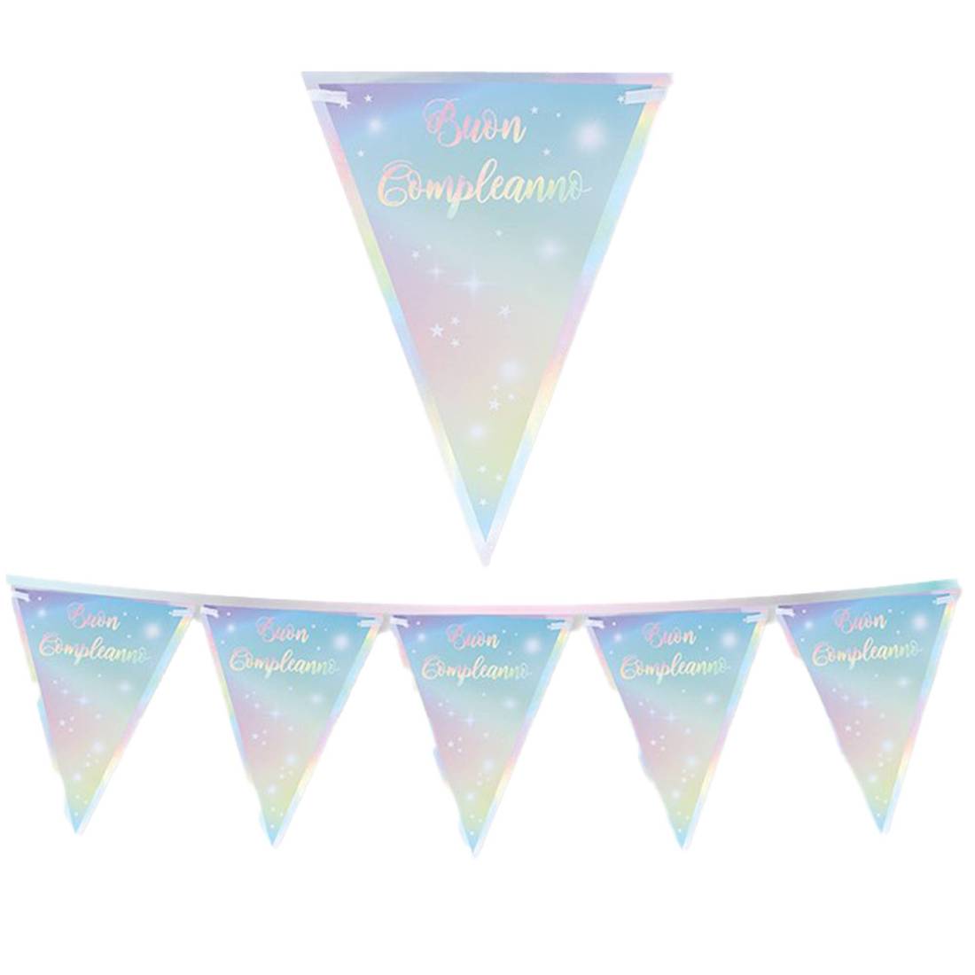 Festone bandiere Soft Rainbow - Buon Compleanno - 3 metri - Big Party