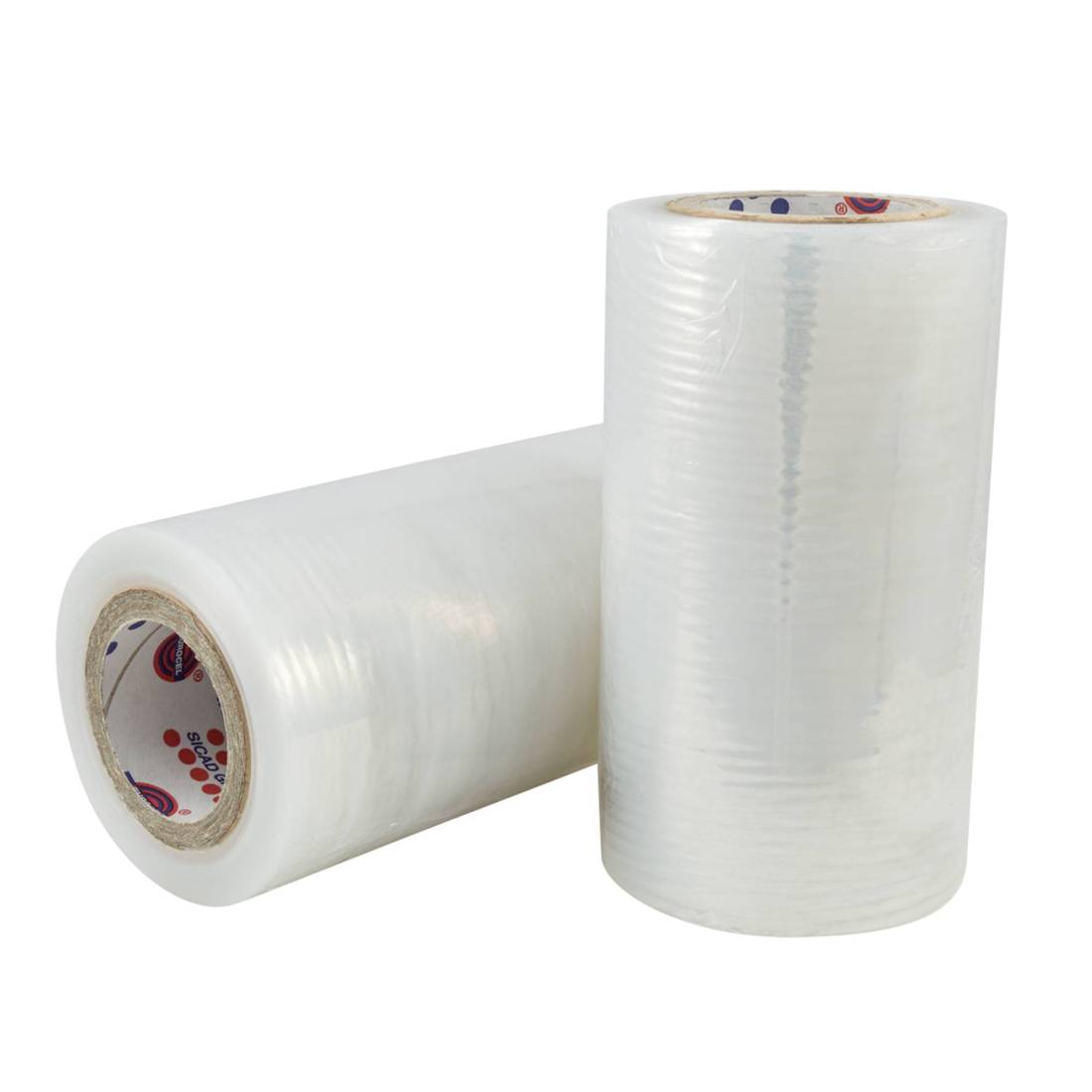 Film estensibile trasparente che si srotola ruotando attorno ad una pratica impugnatura frizionata. Atossico, impermeabile e resistente.