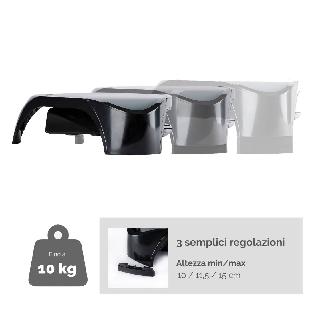 Supporto per monitor a schermo piatto, in grado di sostenere monitor fino a 21” di formato e fino a 10kg di peso. Include una vaschetta porta documenti integrata sotto il piano d’appoggio del monitor e due vani portaoggetti ai lati, in grado di contenere penne, cellulare e altri piccoli oggetti. Compatibile e modulare con il laptop dock cod. 8020301. Tre livelli regolabili di altezza: 100, 115 e 130 mm. Dimensioni: 47,8 x 32,8 x 12 cm. Peso 1,53Kg.