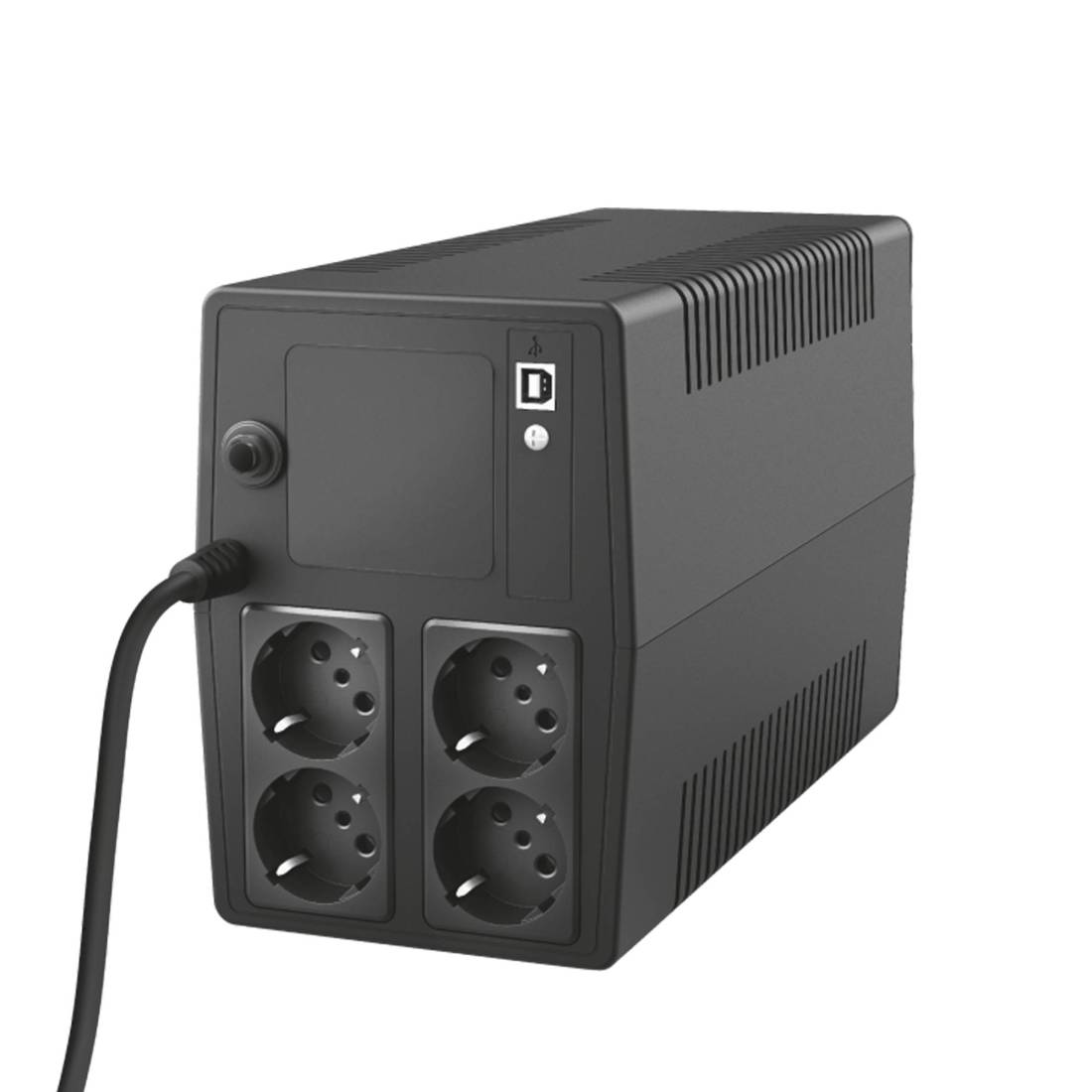 Affidabile UPS da 1000 VA con batteria integrata. Eroga temporaneamente l’energia della batteria durante le interruzioni di corrente; impedisce di perdere dati e danneggiare l’hardware. 4 prese di corrente a parete con batteria e protezione da sovratensione, da collegare al computer, a periferiche di computer, ad apparecchiature di rete, a TV a schermo piatto, a prodotti domotici o sistemi di allarme. Prese protette da sovratensione per impedire danni provocati da sovratensioni, picchi e fluttuazioni. Porta USB e software per monitorare lo stato dell’UPS, che invia allarmi e lo spegnimento automatico del computer. Funzione AVR per garantire una stabile tensione di uscita a 230 V. Allarmi chiari e avvertibili quando la corrente si interrompe, in modo da concedere il tempo di salvare i file e spegnere il computer. Protezione integrata da carico eccessivo, scarica e sovraccarico. Dimensioni: 182x130x320mm. Peso: 10kg.