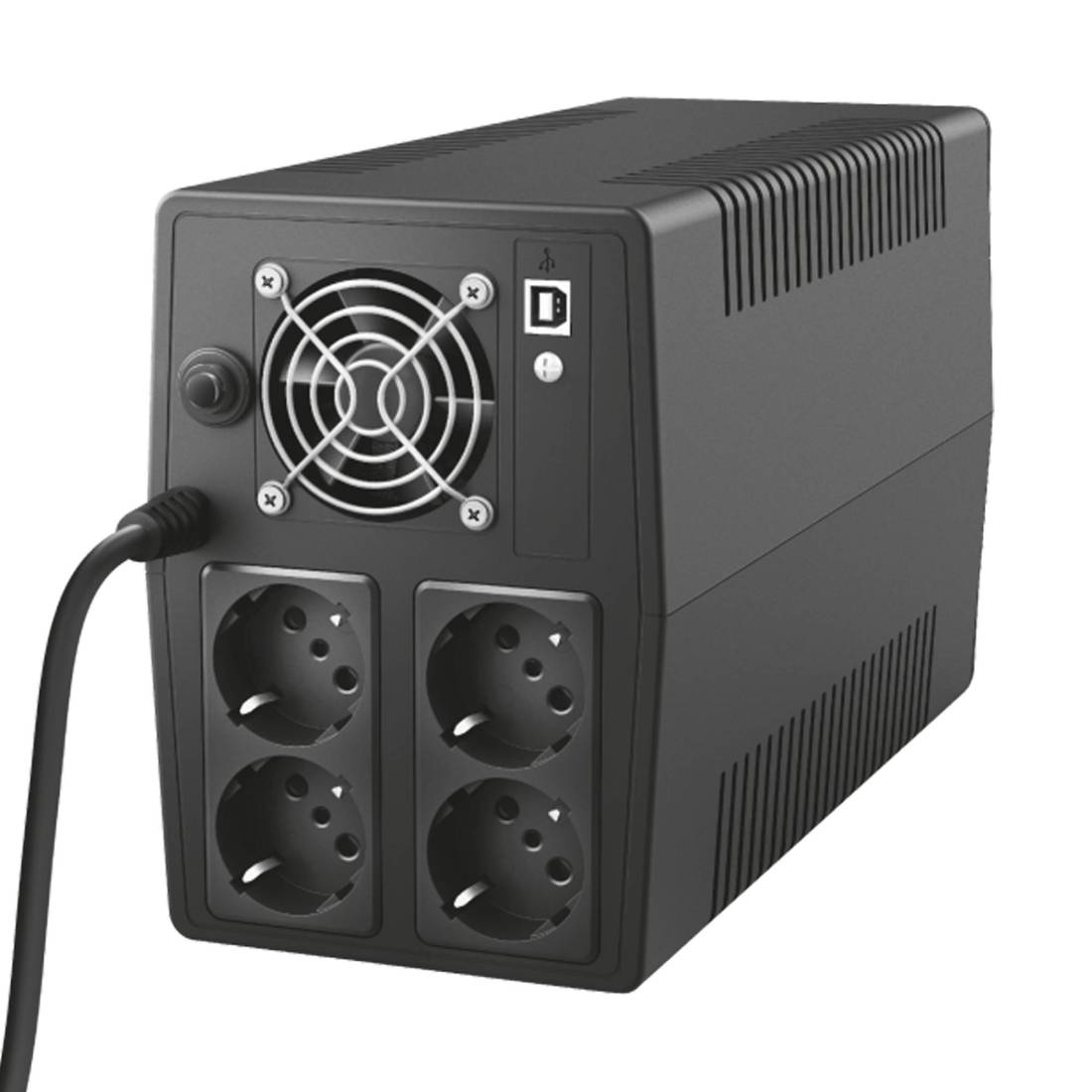 Affidabile UPS da 1500 VA con batteria integrata. Eroga temporaneamente l’energia della batteria durante le interruzioni di corrente; impedisce di perdere dati e danneggiare l’hardware. 4 prese di corrente a parete con batteria e protezione da sovratensione, da collegare al computer, a periferiche di computer, ad apparecchiature di rete, a TV a schermo piatto, a prodotti domotici o sistemi di allarme. Prese protette da sovratensione per impedire danni provocati da sovratensioni, picchi e fluttuazioni. Porta USB e software per monitorare lo stato dell’UPS, che invia allarmi e lo spegnimento automatico del computer. Funzione AVR per garantire una stabile tensione di uscita a 230 V. Allarmi chiari e avvertibili quando la corrente si interrompe, in modo da concedere il tempo di salvare i file e spegnere il computer. Protezione integrata da carico eccessivo, scarica e sovraccarico. Dimensioni: 182x130x320mm. Peso: 10kg.