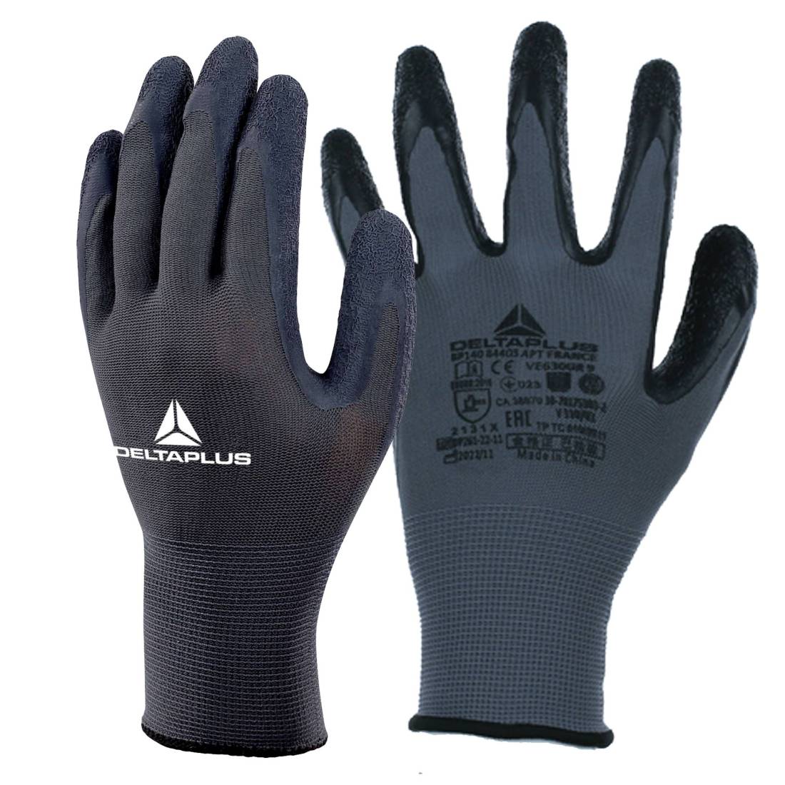 Guanti da lavoro VE630 - poliestere - palmo in lattice - taglia 09 - grigio - Deltaplus