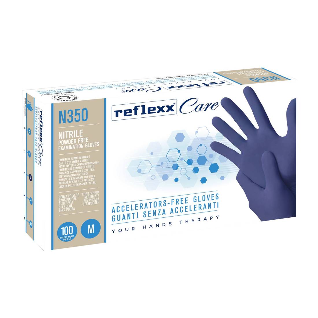 Guanti nitrile ipoallergenici N350 - senza acceleranti - taglia M - blu - Reflexx - conf. 100 pezzi