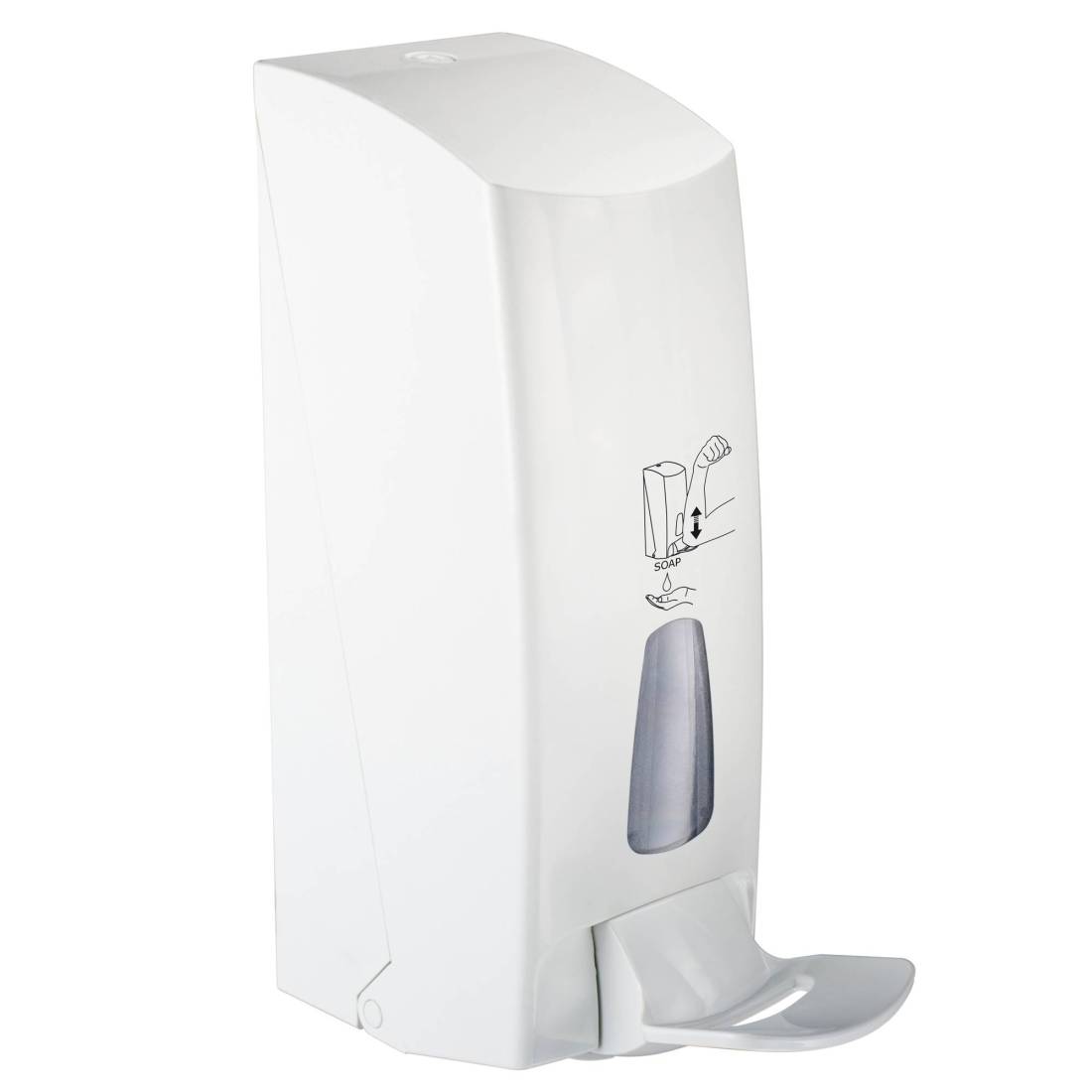 MAR PLASTDispenser a riempimento per sapone liquido/gel igienizzante. Fissaggio a muro o su piantana art.612 con con tasselli 'Fischer' in dotazione. Vaschetta capacità 1 litro, con coperchio “a tenuta”. Chiusura a scatto, apertura con chiave. Azionamento mediante leva sagomata per spinta a gomito “hospital”, con pompa “small” (ml 0,7).