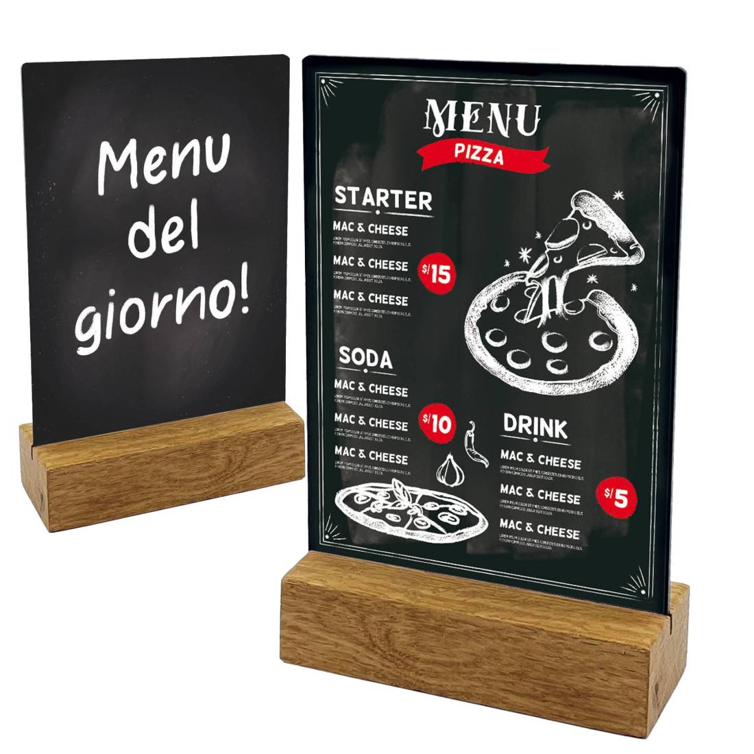 Scrivibile con gessi solidi e liquidi, con base in legno massello. Utilizzabile anche in orizzontale.