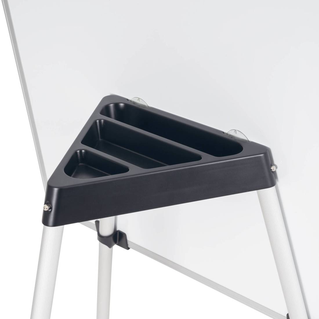 BI-OFFICECon cornice in alluminio, portatile e versatile. Può essere facilmente riposto quando non è in uso. Puoi scrivere o disegnare su blocchi per lavagne o direttamente sulla lavagna. La superficie della lavagna è cancellabile a secco ed è facile da pulire. L’altezza della lavagna è regolabile. Il treppiede in alluminio è dotato di un connettore triangolare che funge da vassoio per gli accessori e i pennarelli. Include i morsetti per blocchi. Le parti di cui è composto possono essere facilmente sostituite o riparate se si danneggiano.