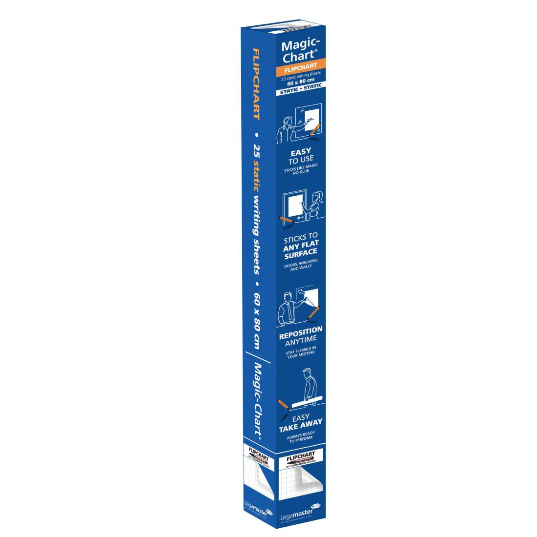 Fogli elettrostatici Magic Chart - 60 x 80 cm - quadretti 2,5 cm - Legamaster - rotolo da 25 pezzi