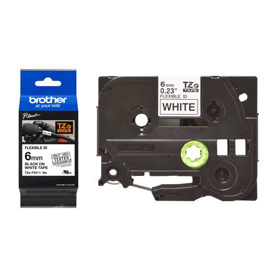 Brother - Nastro laminato flessibile - Nero / Bianco - TZEFX211 - 6mm x 8mt