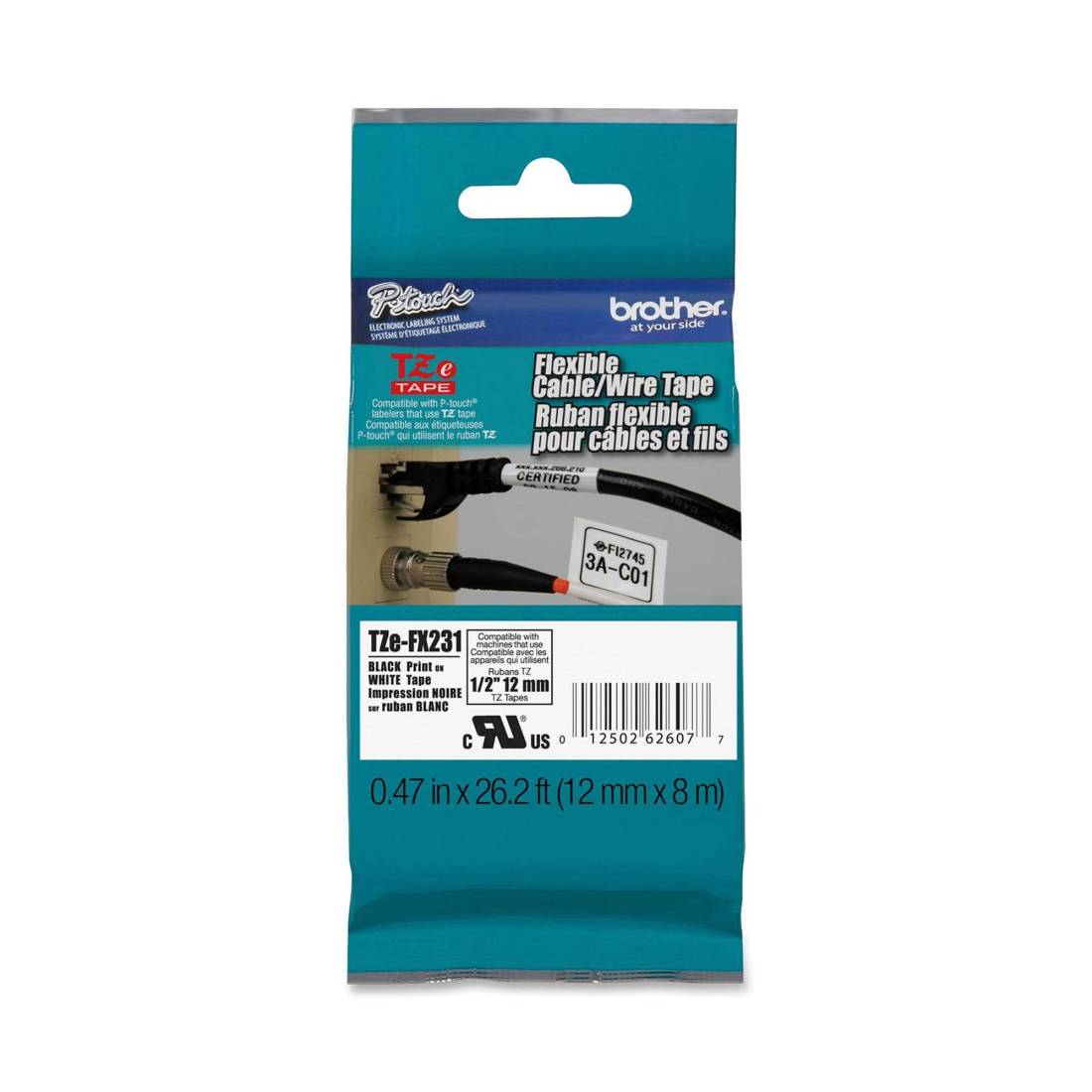 Brother - Nastro laminato flessibile - Nero/Bianco - TZEFX231 - 12mm x 8mt
