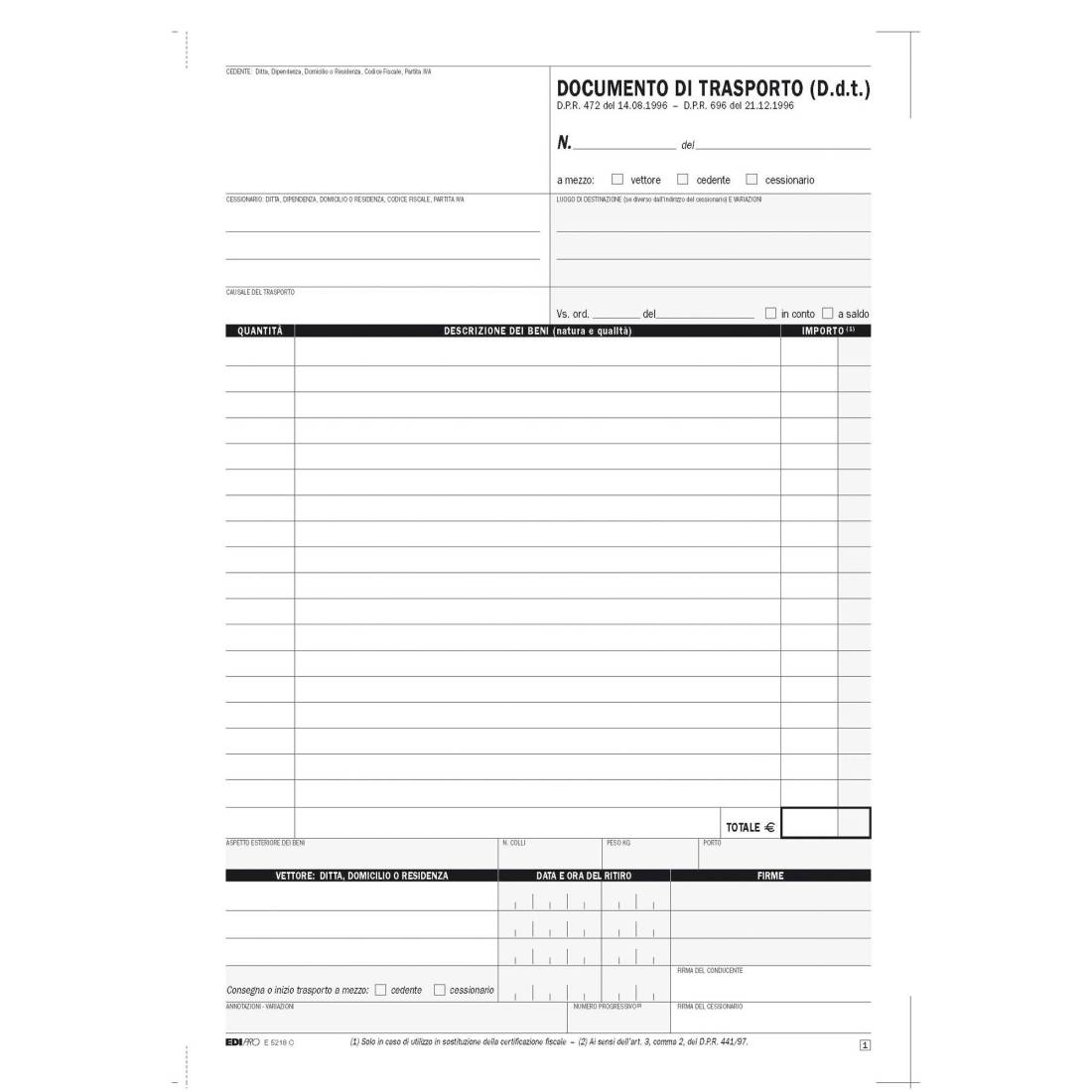 Blocco DDT - 25 fogli 4 copie autoricalcanti - 29,7 x 21cm - Edipro
