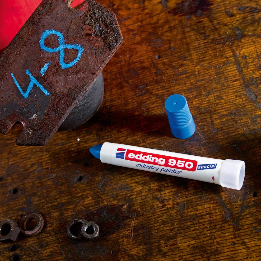 EDDINGMarcatore industriale altamente permanente ideale per metallo, pietra e legno. Tratto fino 10 mm. Altamente coprente, è resistente alle superfici particolarmente difficili e uniformi. Resiste all'acqua e al calore fino a 300°. Marcatura visibile anche in condizioni di illuminazione compromessa.