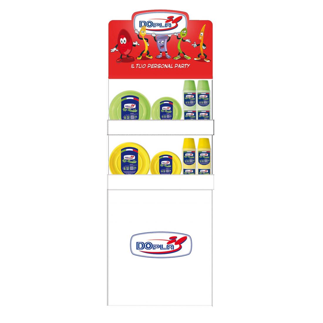 Espositore da terra Mini - con piatti e bicchieri Reuse - giallo/verde - Dopla