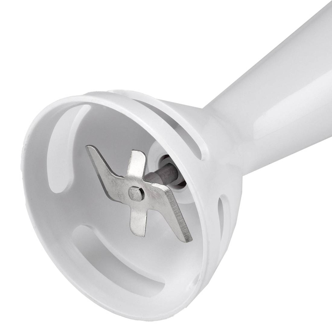 Mixer ad immersione in grado di miscelare zuppe, cremose vellutate e salse direttamente nel piatto, preparare gustosi frullati, sminuzzare frutta e verdura, ridurre in purè, tritare e miscelare gli ingredienti per la preparazione di dolci in pochi secondi e senza fatica. Potenza 170W. Funzionamento Pulse. 4 Lame in acciaio inox e impugnatura ergonomica. Anello per appenderia. Dimensioni: 6,5x37,5x6,5cm. Alimentazione: AC 230V ~ 50Hz. Peso 0,55kg.